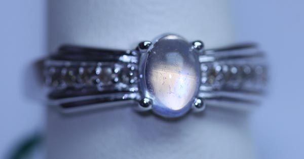 16.00 CTW MOONSTONE AND DIAMOND RING .925 STERLING SILV **|**|** 16.00 CTW MOONSTONE AND DIAMOND RING .925 STERLING SILVER; DIAMOND 0.14 CTW; CENTERSTONE 0.84 CTW ; MSRP: $750