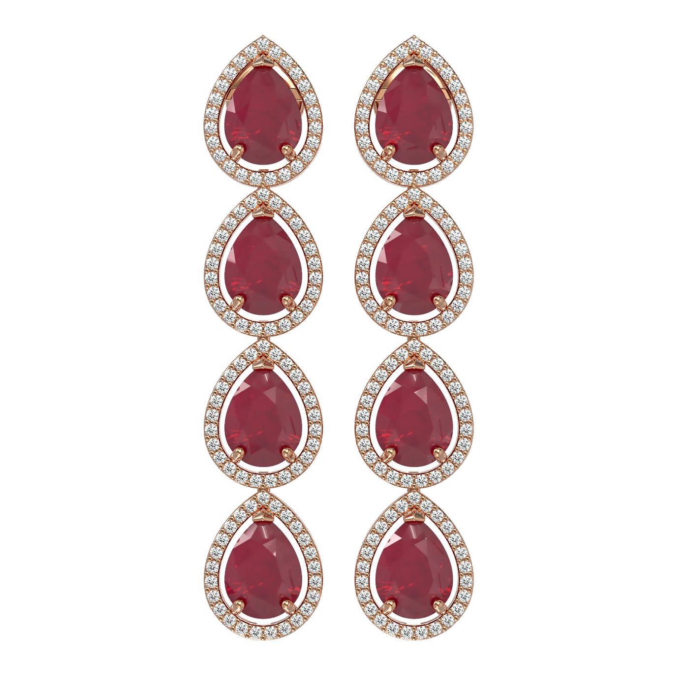 16.01 ctw Ruby & Diamond Micro Pave Halo Earrings 10K Rose Gold