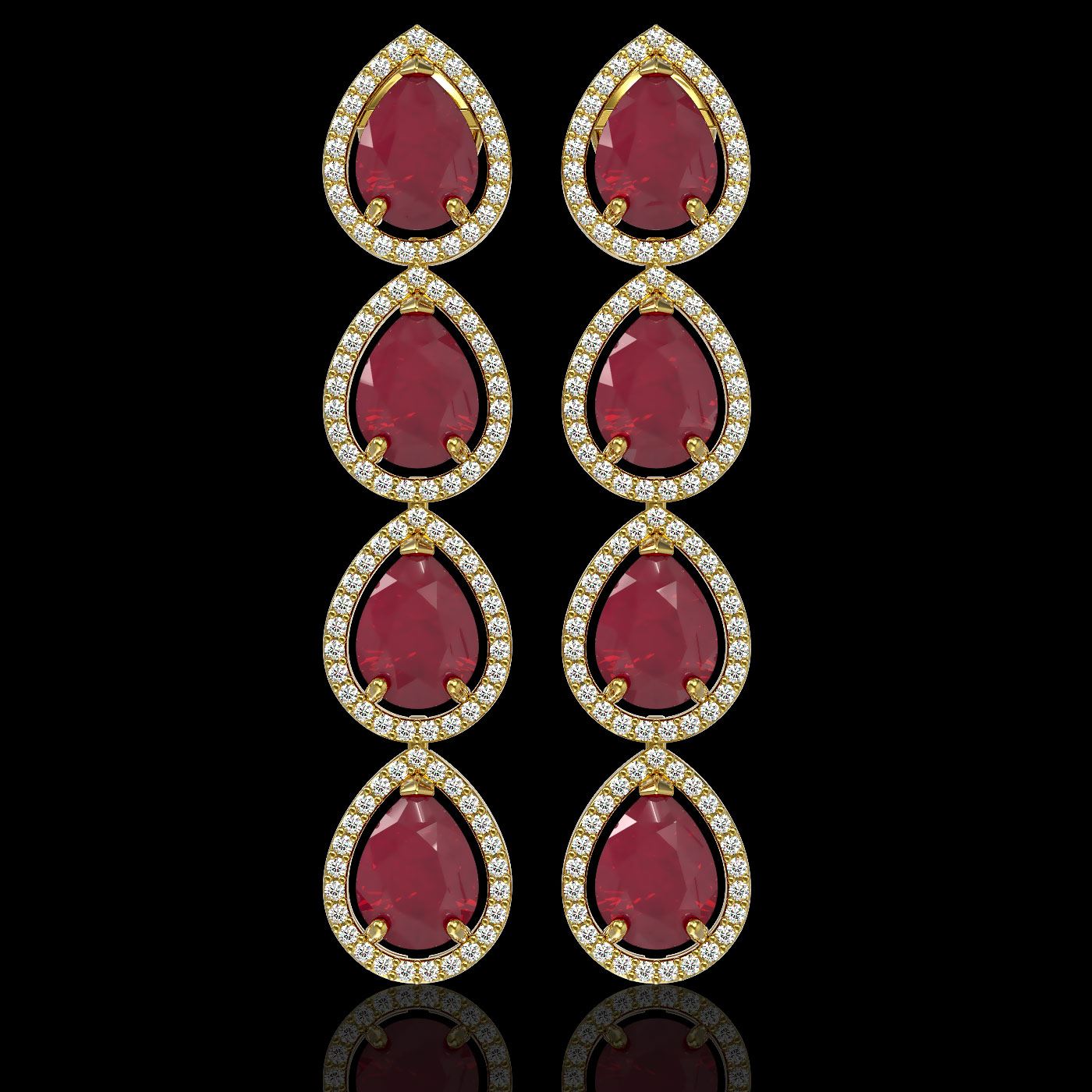 REF-236N4F - SKU: 41287 ---- 16.01 ctw Ruby & Diamond Micro Pave Halo Earrings 10k Yellow Gold