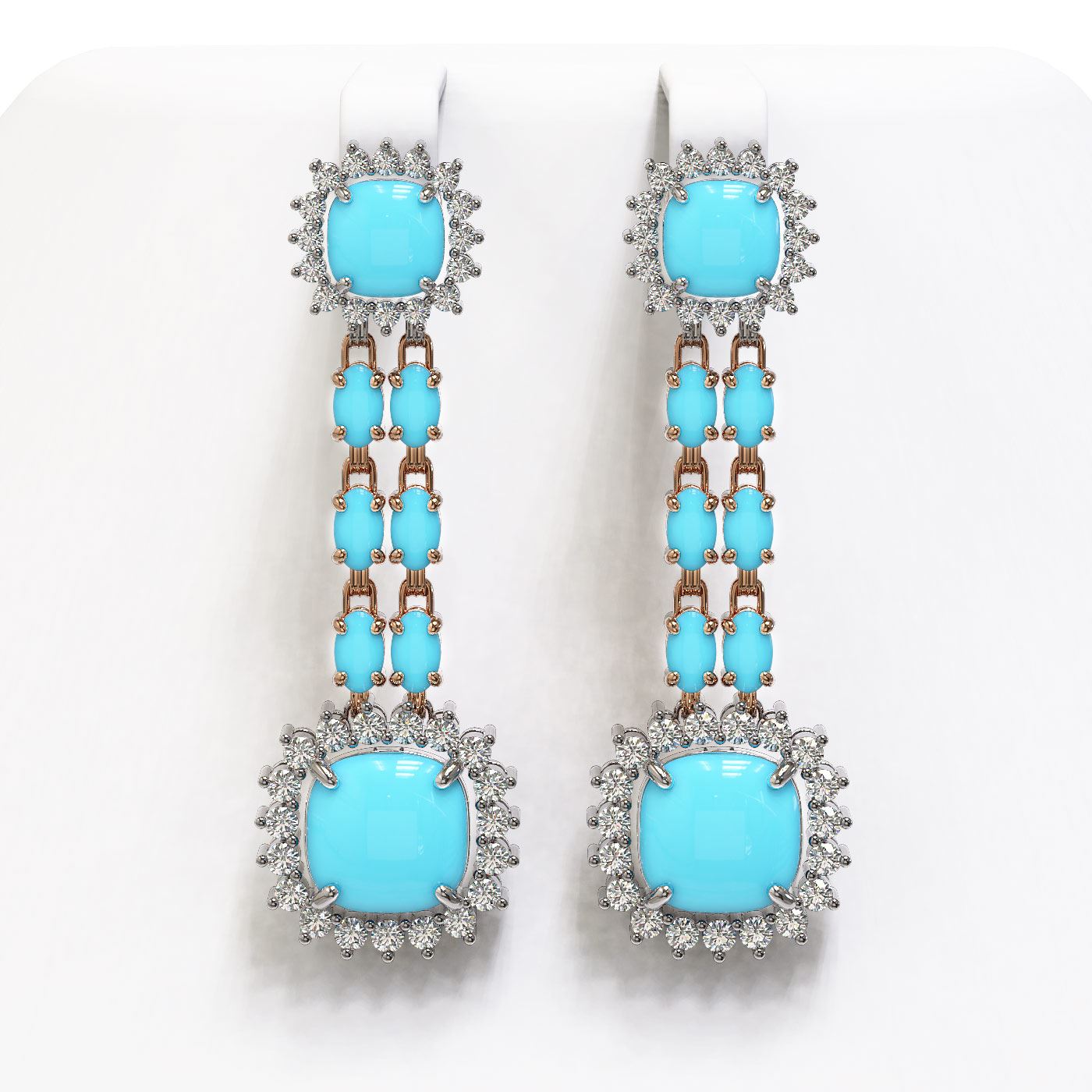 SKU: 44961 ---- 16.04 ctw Turquoise & Diamond Earrings 14K Rose Gold