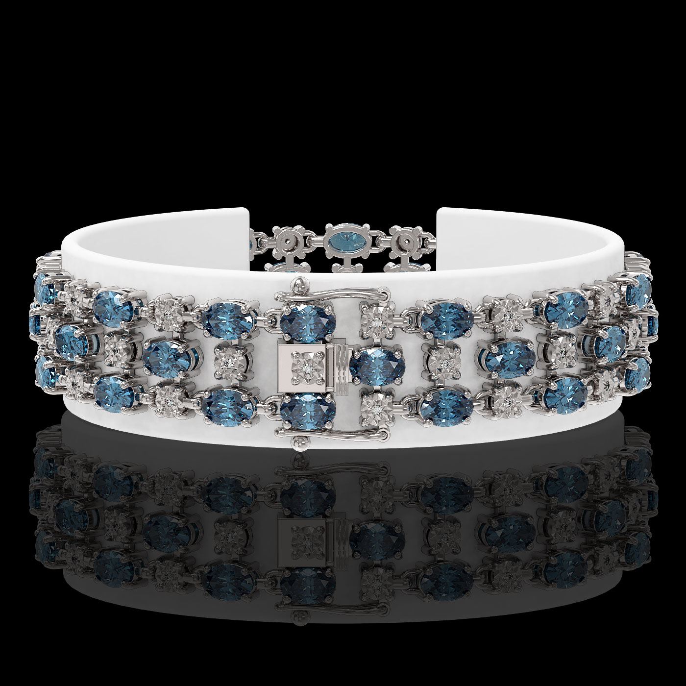 REF-209R3K - SKU: 40993 ---- 16.06 ctw London Topaz & Diamond Row Bracelet 10K White Gold