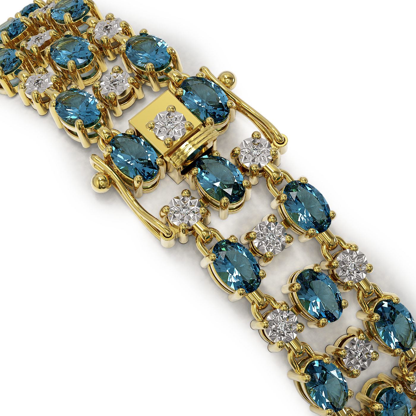 SKU: 40995 ---- 16.06 ctw London Topaz & Diamond Row Bracelet 10K Yellow Gold
