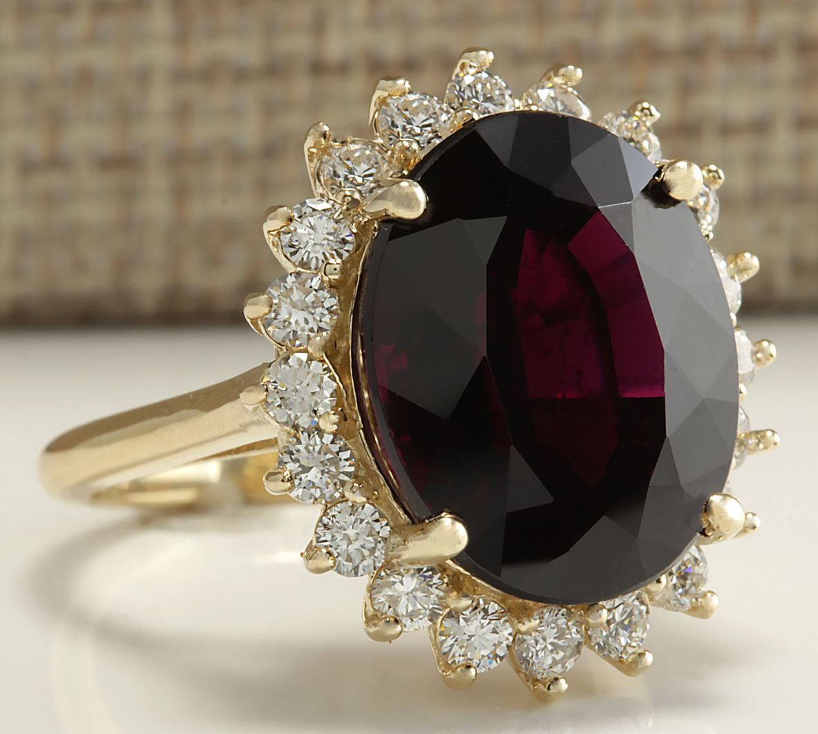 16.07 CTW Natural Hessonite Garnet And Diamond Ring 14K Solid Yellow Gold