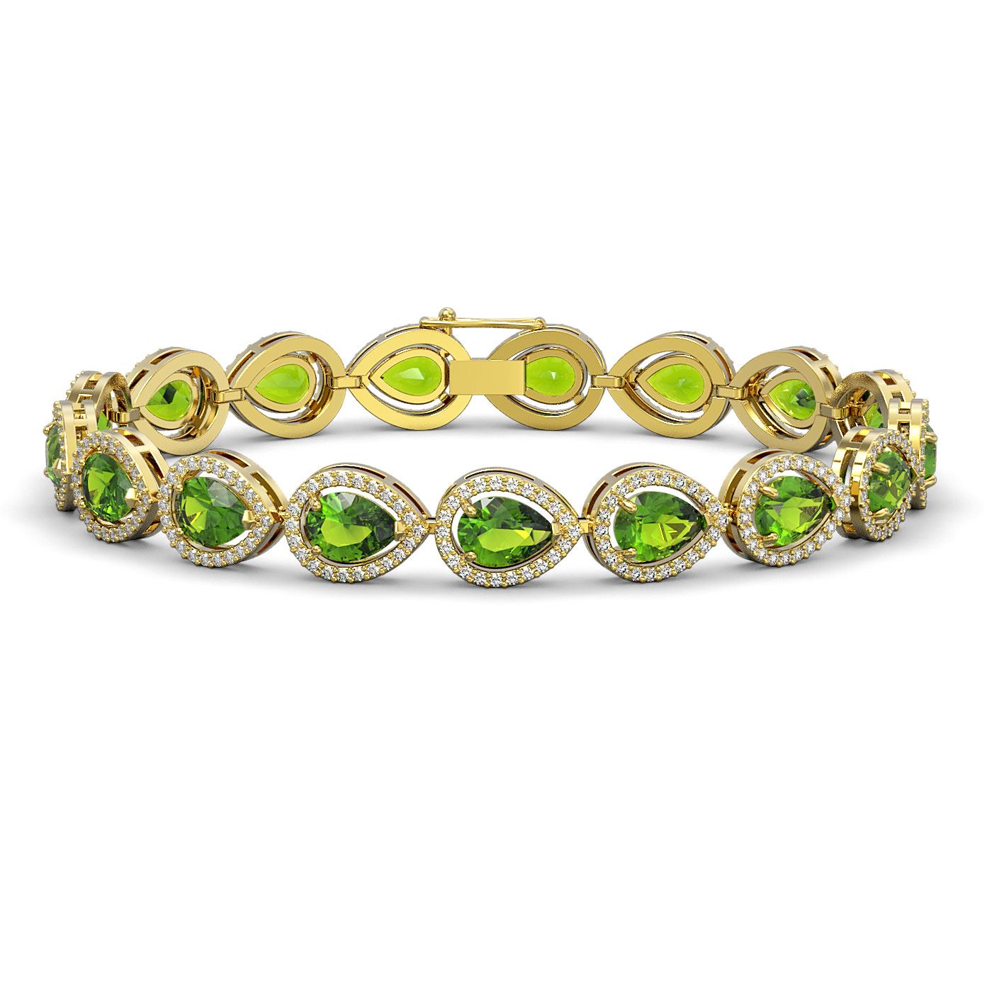 SKU: 41119 ---- 16.08 ctw Peridot & Diamond Micro Pave Halo Bracelet 10k Yellow Gold