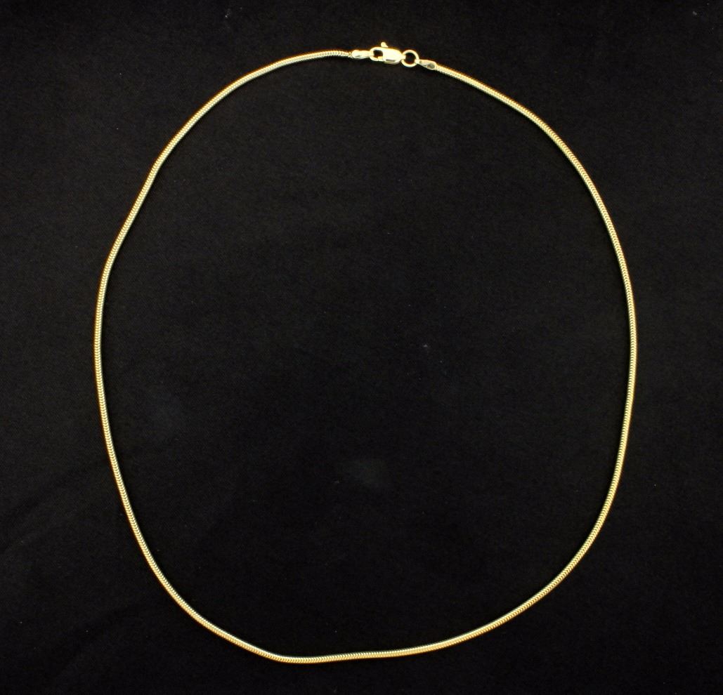 14K yellow gold, it is 1.6mm thick. 5.9g