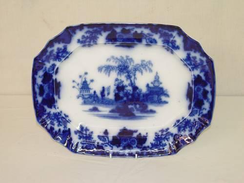 16 1/4" SCINDE FLOW BLUE SCALLOPED EDGE PLATTER - SURFACE WEAR;