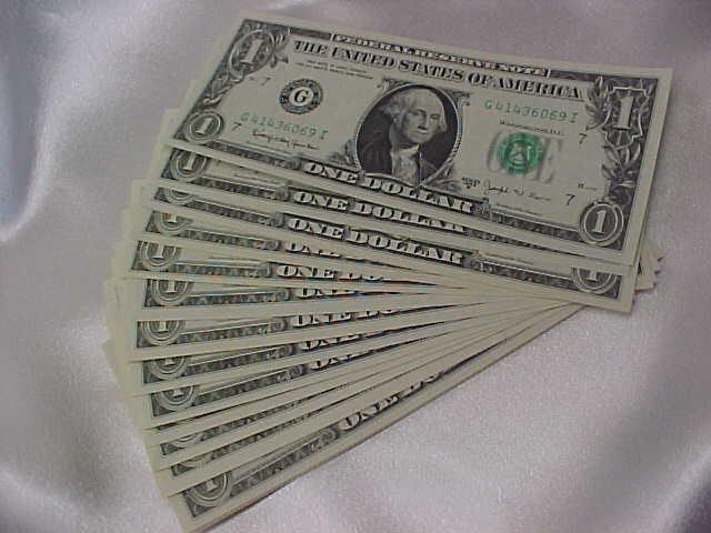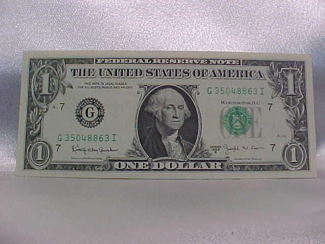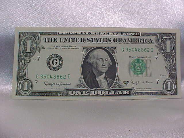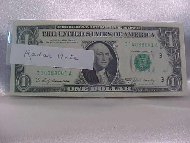 16-$1 FRN, all CH CU: 1969B Radar C14088041A; 4 "GI" Notes 1963B (G41436069I, G06793973I, G35048862I, 63I); 2-1977A Star (D06517277, E00201477); 1974 (G24506977D); 3 Boston (A88869277B, A99751883A-884A); NY (B06221277H): Philadelphia (C24228277C); 3 Atlanta (F92270277F, F99840177B, F99840281B)