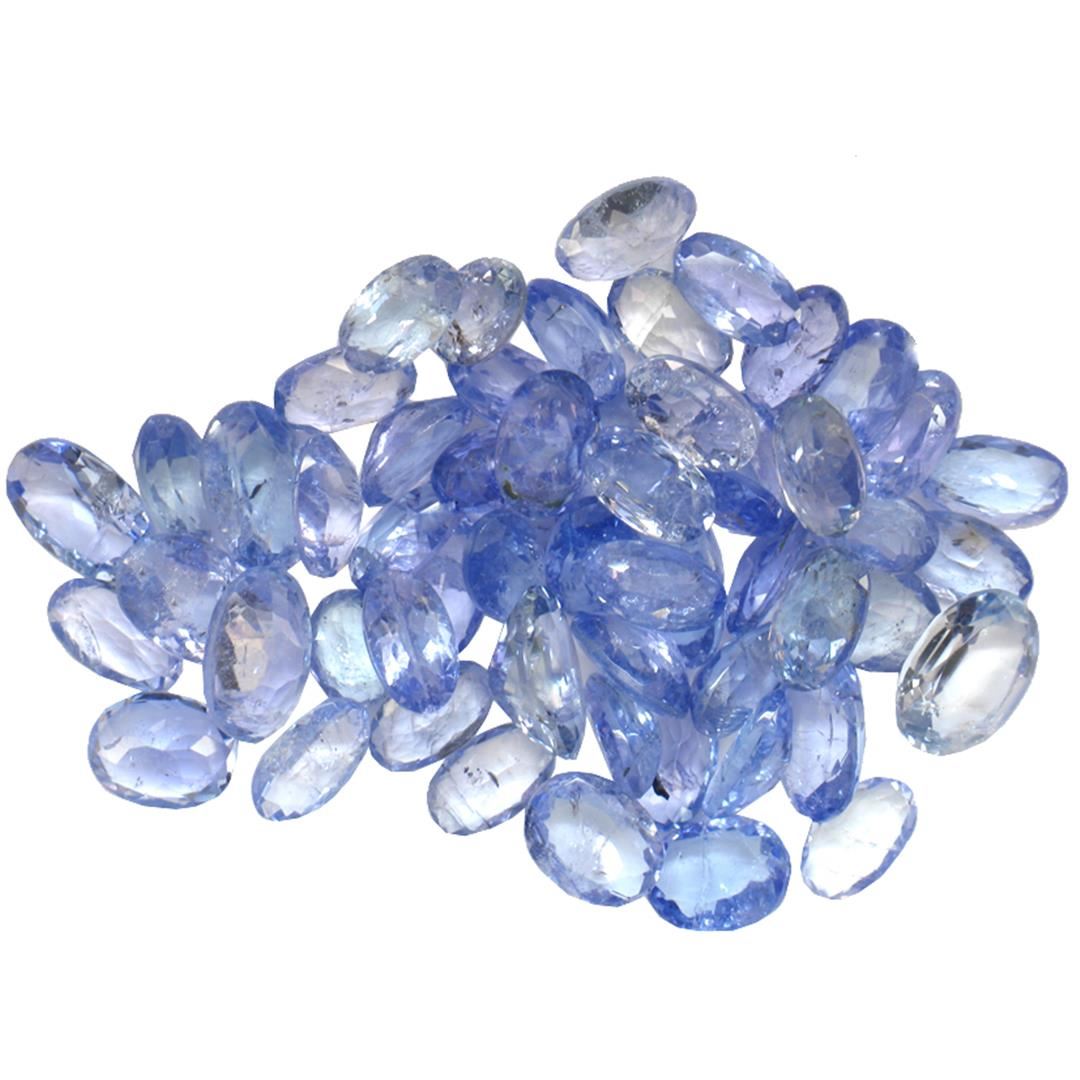 Thirty oval mixed cut natural tanzanites exact total weight 16.10ct., clarity is slightly included, type I, medium dark, very slightly grayish, violetish blue color, (GIA vB 6/3), cut is good. Measurements & the color grade are an average for the group, Color grade is an average for the group, Naturally occurring internal & external characteristics are present, Indications of laboratory high temperature heat treatment. Westfield Appraised at $1,550.00.