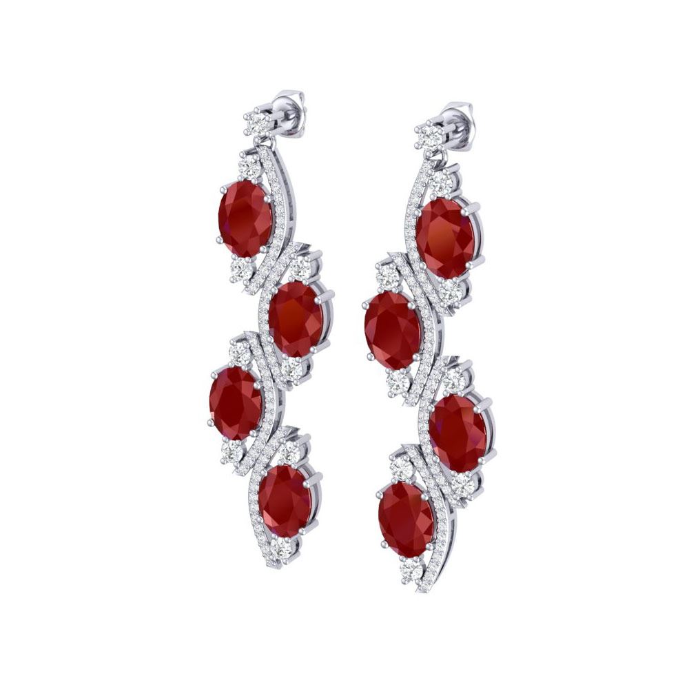 16.12 ctw Designer Ruby & VS Diamond Earrings 18K White Gold