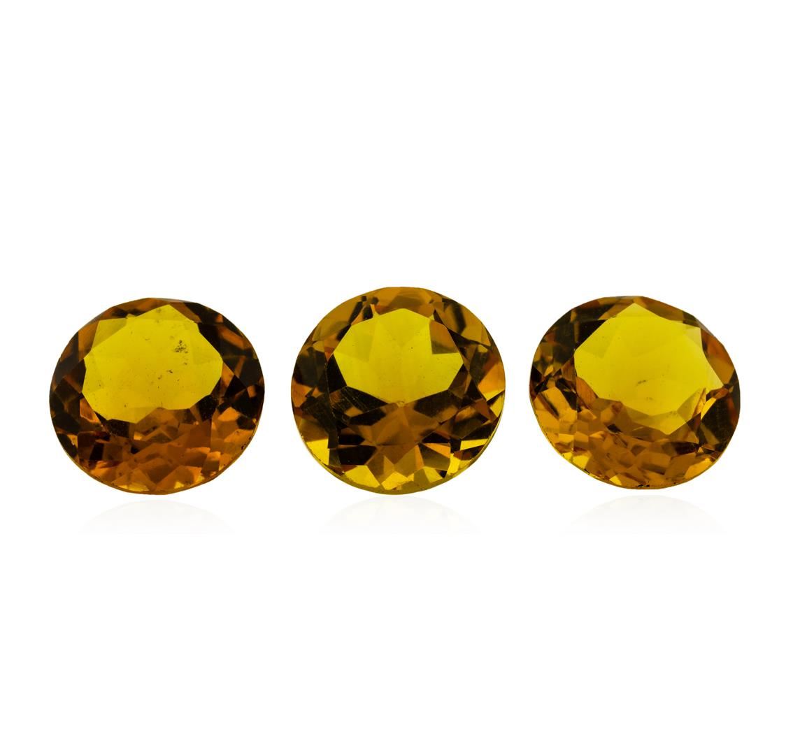 One natural round cut citrine quartz parcel of three with an exact weight of 16.13ctw., clarity is eye clean, yellowish orange, medium dark. Gemological Appraisals Services estimates the retail value at $645.2 GAS Appraised.