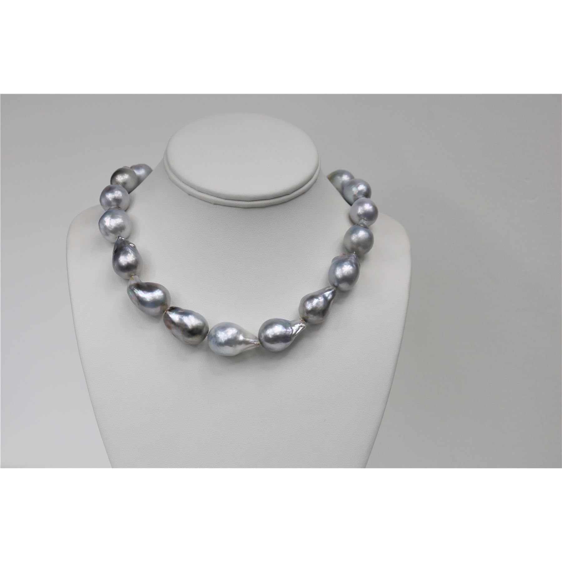 16-17mm Tahitian Silver Grey Long Baroque Necklace with Gold Clasp