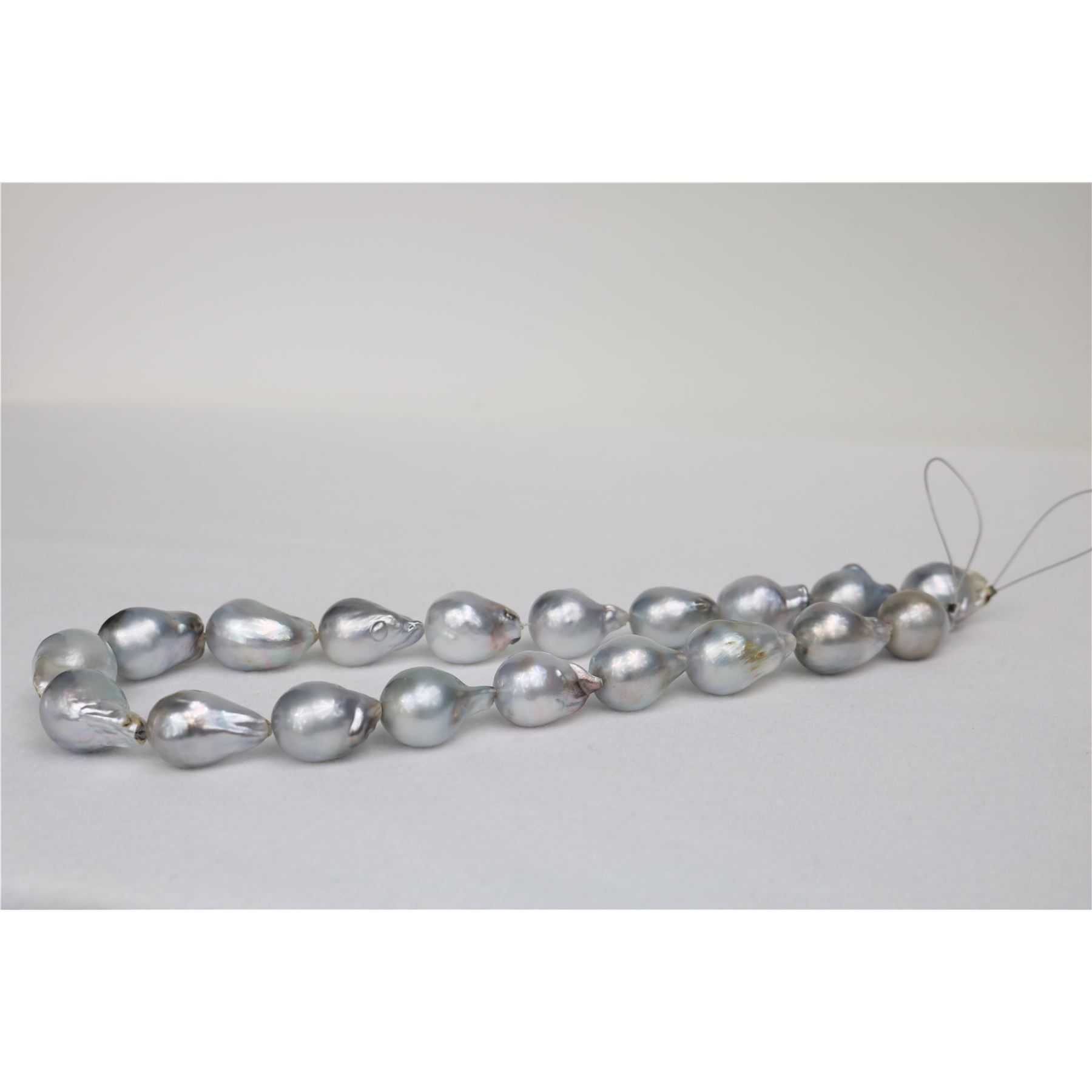 AAA Quality, Tahitian Silvery Grey RARE large baroque pearls, 18 inches hand knotted with gold fishhook clasp #CP47
