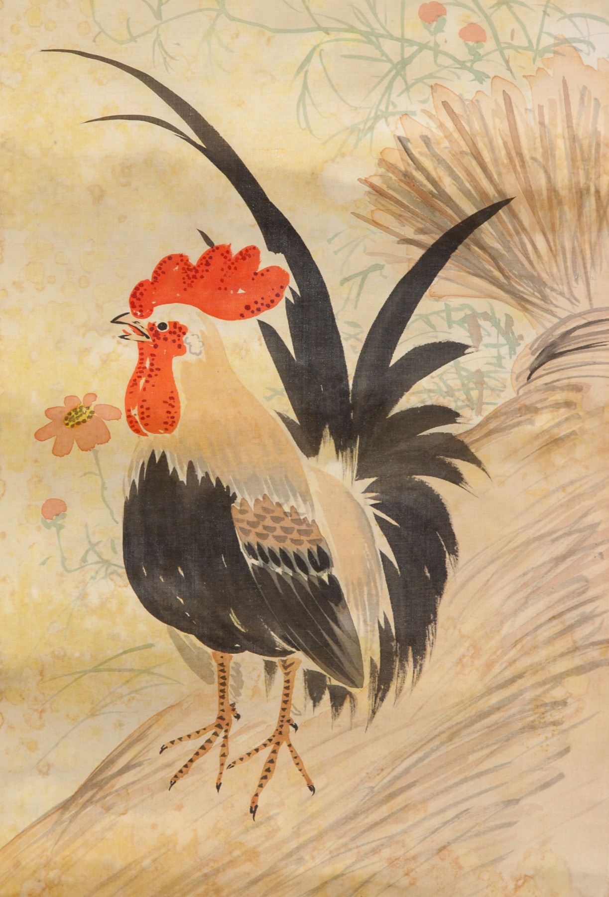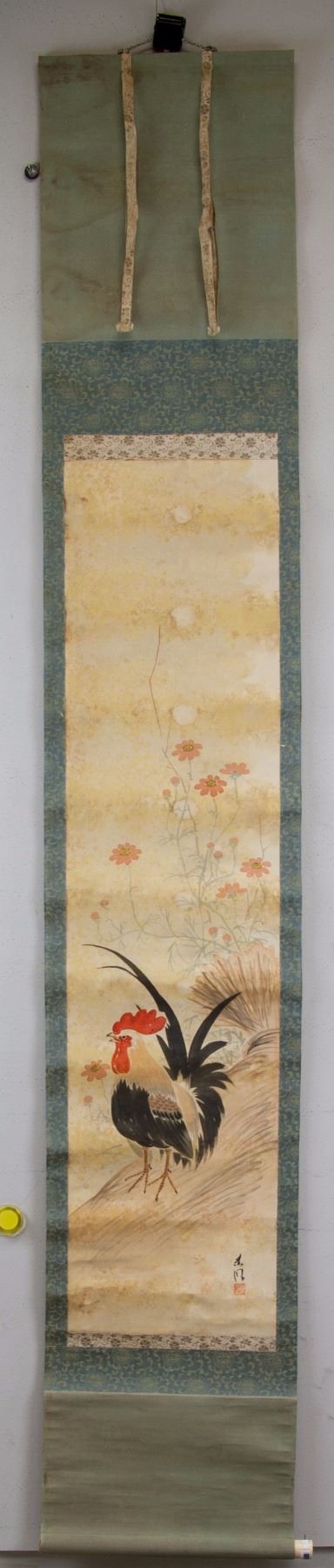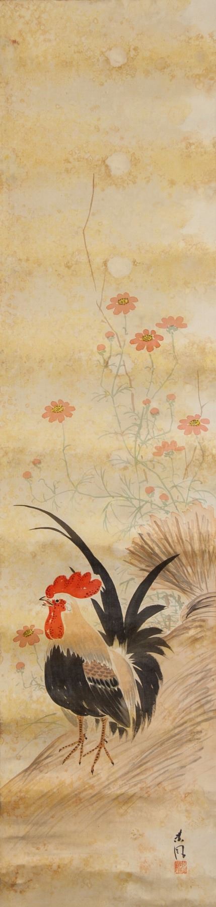 Painting of rooster; Chinese ink and watercolour on paper; hanging scroll; signed by artist; inscribed with 1 artist seal; 16th-18th century; 110 cm x 27 cm