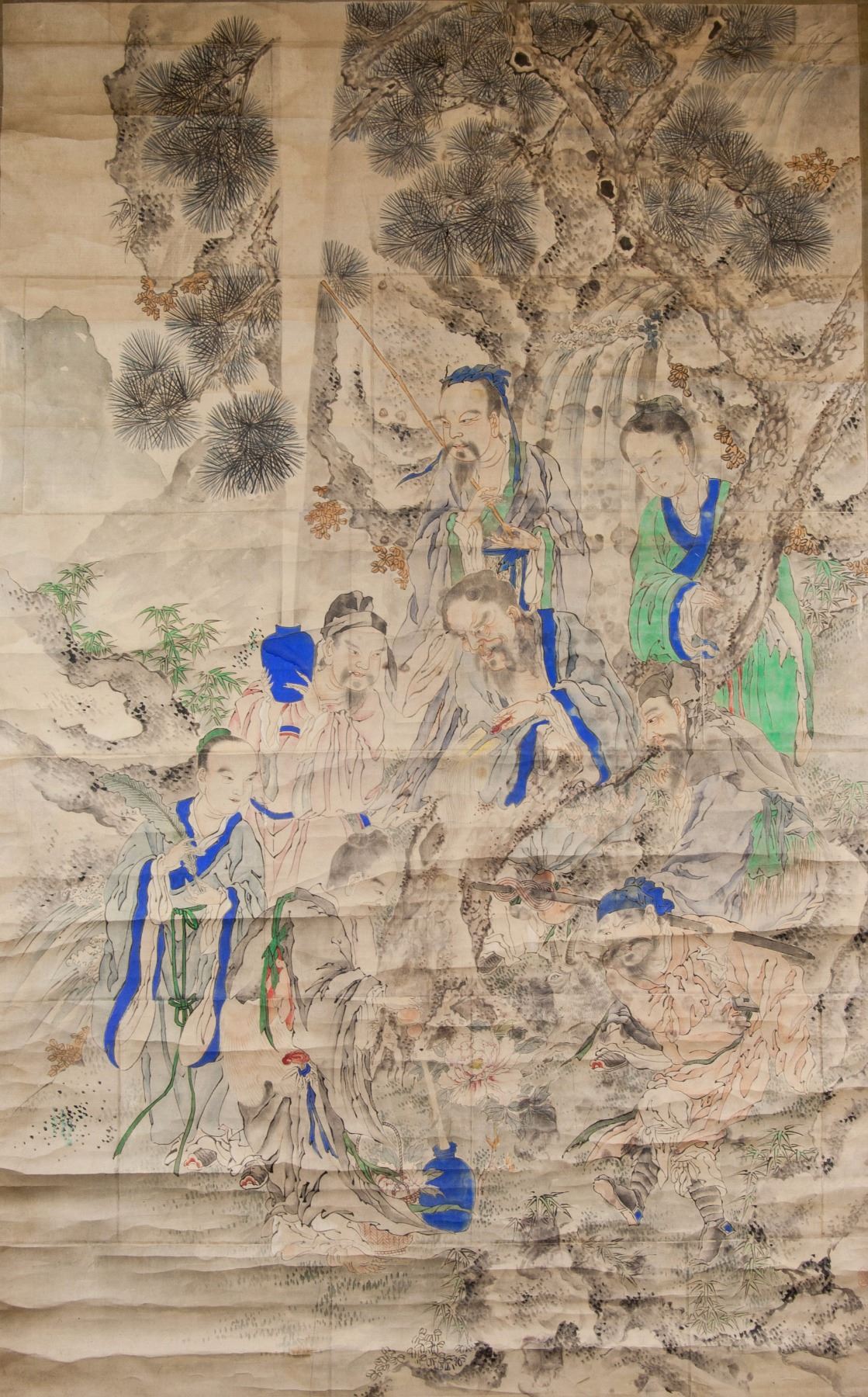 Painting of immortals; Chinese ink and watercolour on paper; hanging scroll; inscribed with 1 artist seal; 16th-18th century; 146 cm x 91 cm