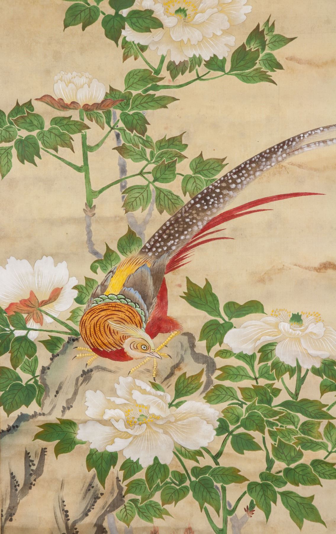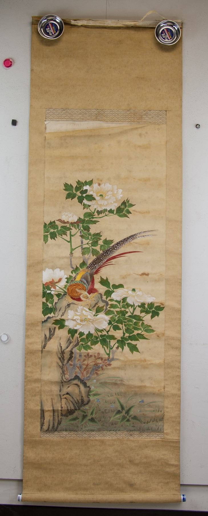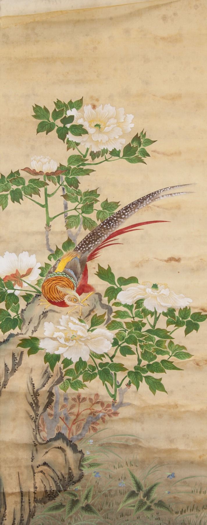 Painting of pheasant and peony flower; Chinese ink and watercolour on silk; hanging scroll; 16th-18th century; 127 cm x 60 cm