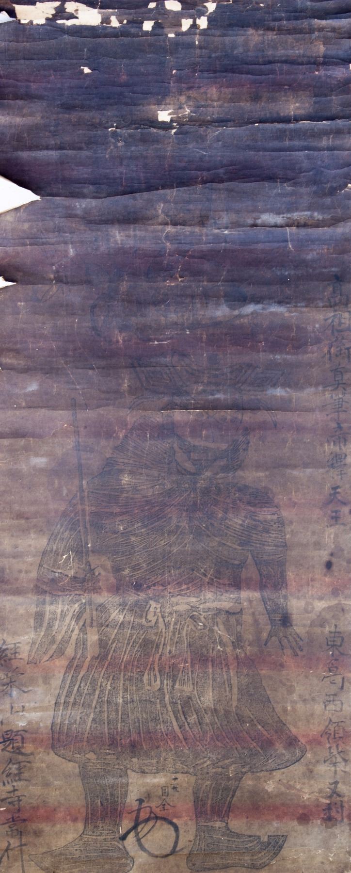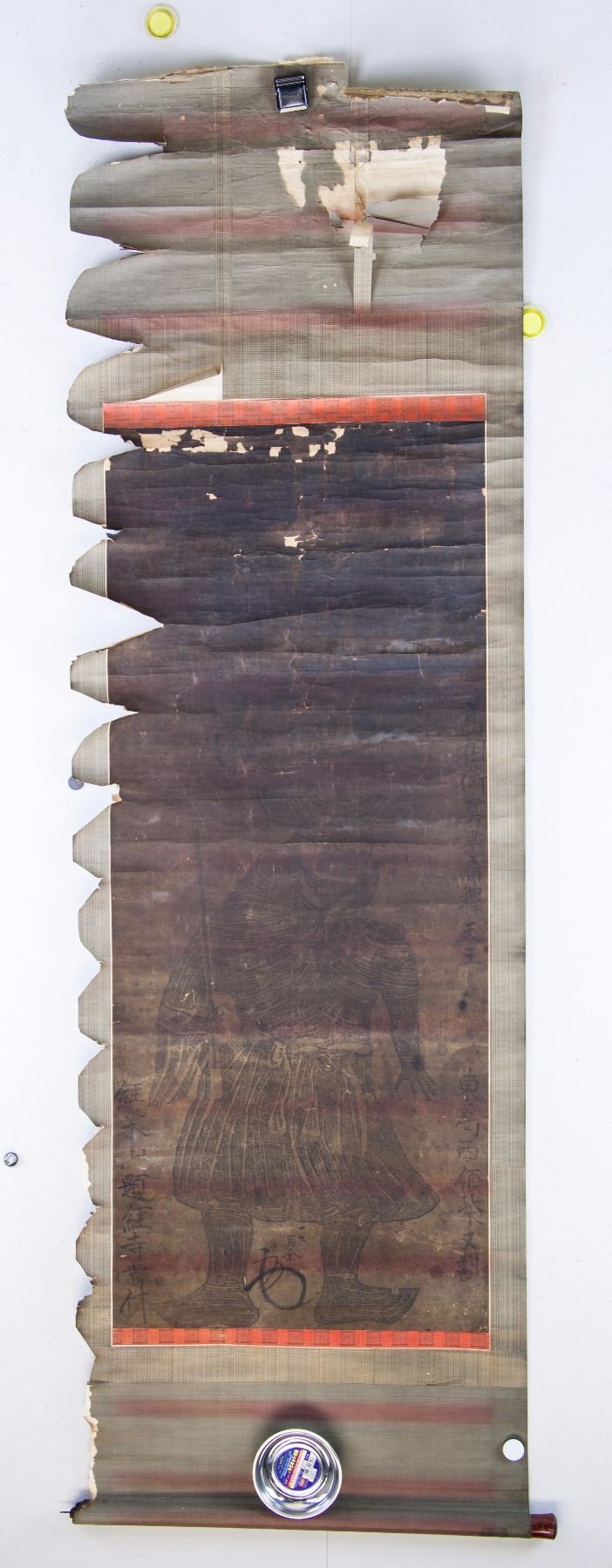 Painting of Sakra, Buddhist deity; Japanese ink on paper hanging scroll; signed by artist; 16th-18th century; 108 cm x 46 cm