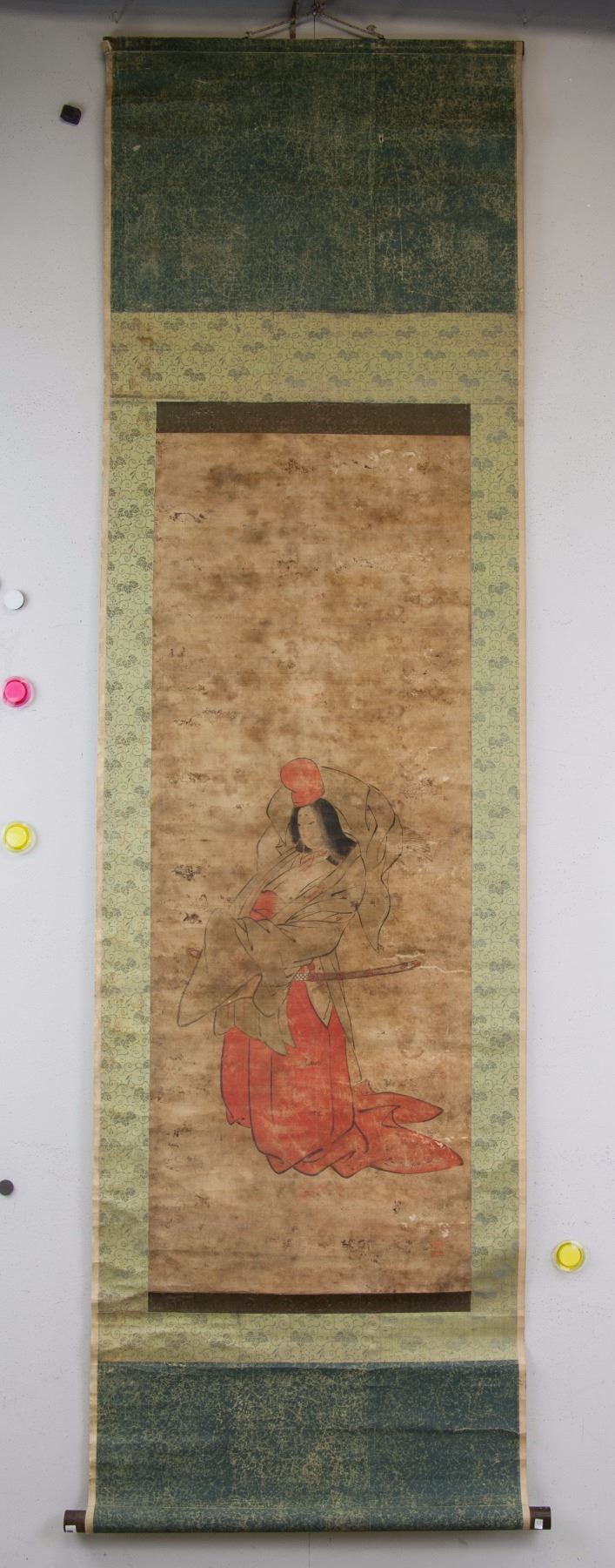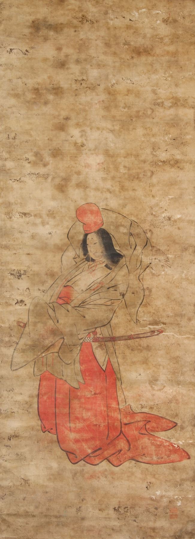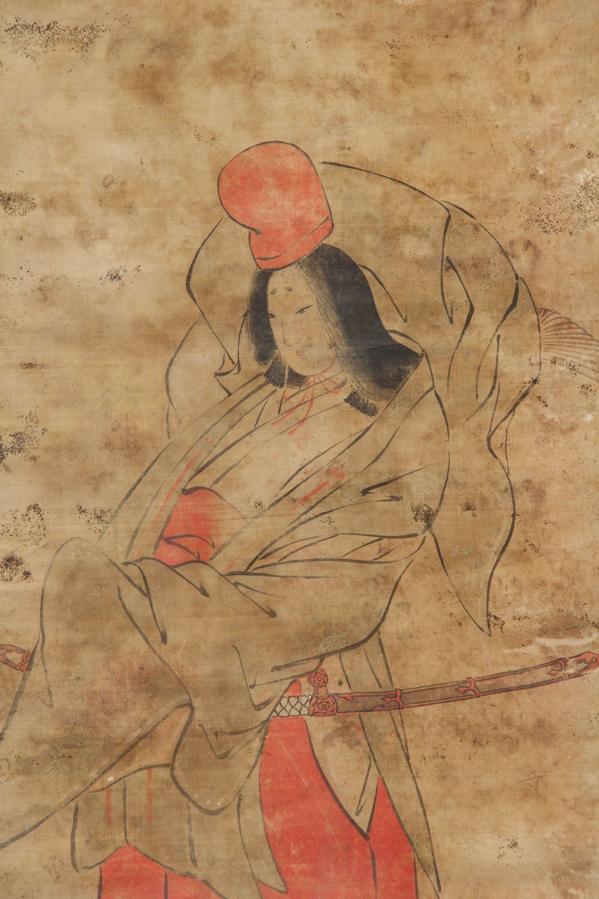 Painting of samurai; Japanese ink and watercolour on silk; hanging scroll; inscribed with 1 artist seal; 16th-18th century; 106 cm x 40 cm