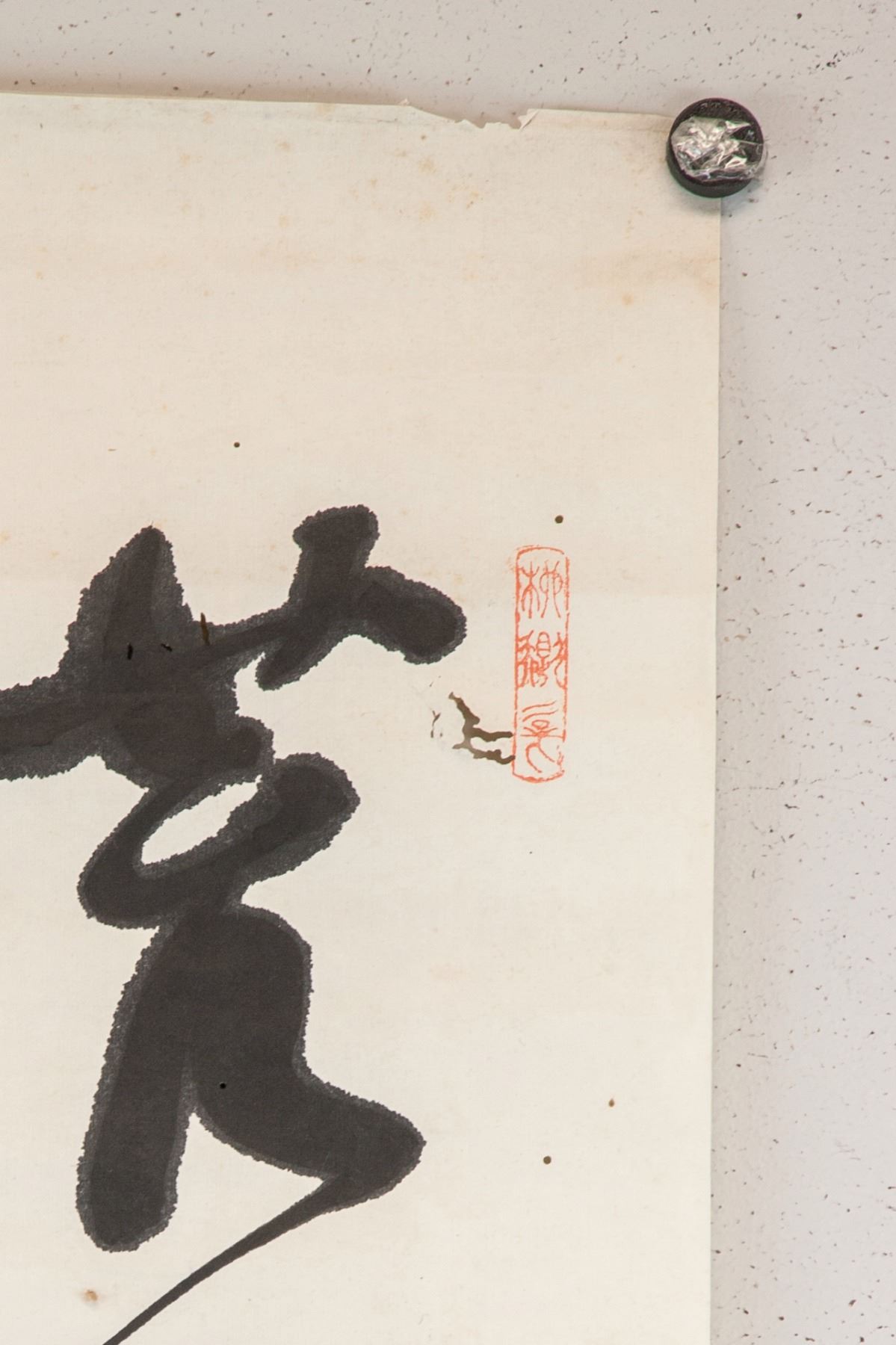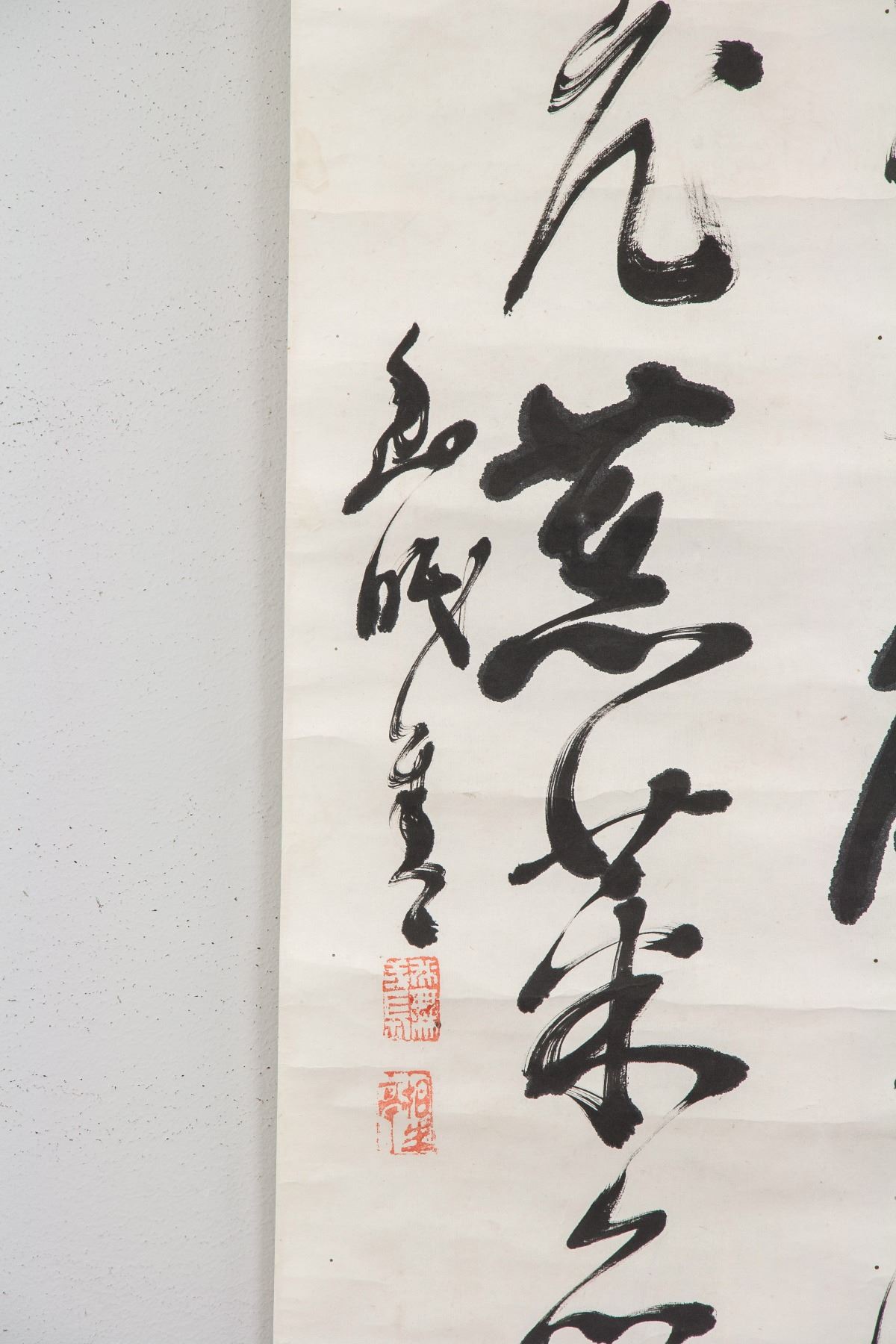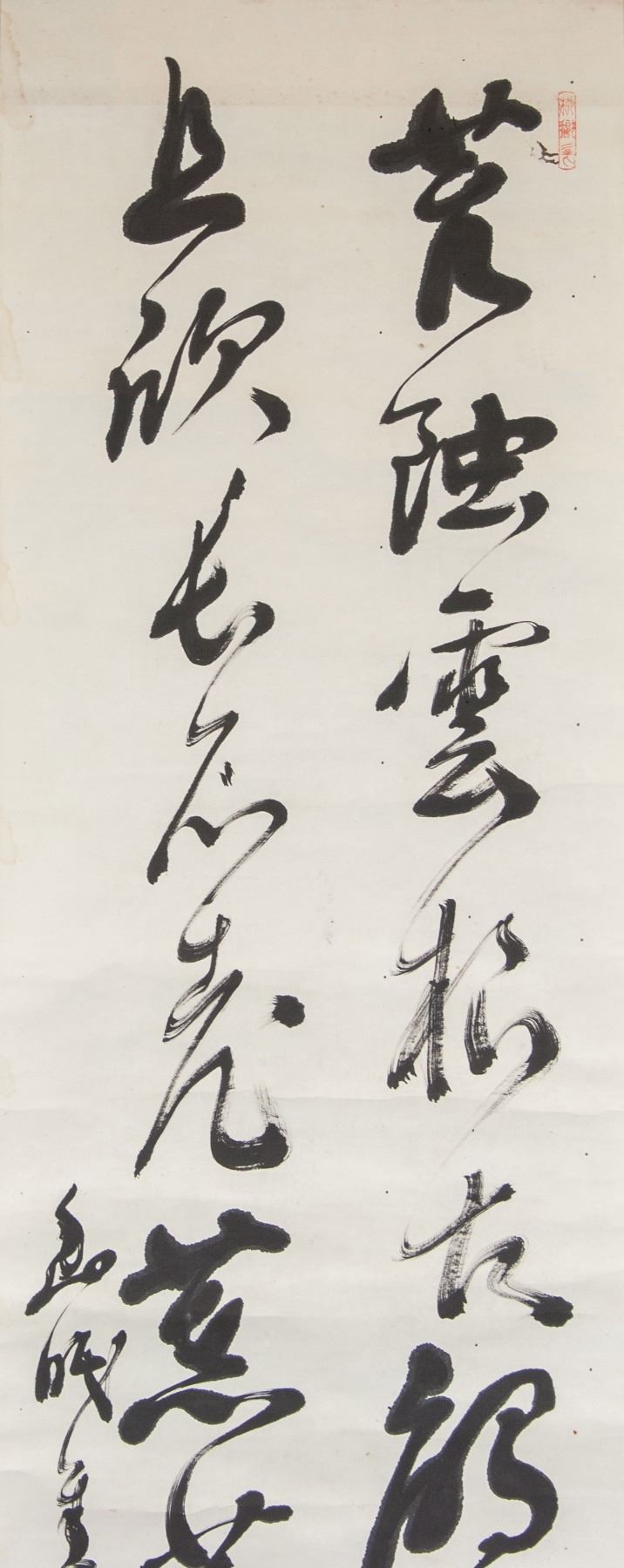 Chinese calligraphy in cursive script; Chinese ink on paper; signed by artist; inscribed with 3 artist seals; 16th-18th century; 137 cm x 34 cm