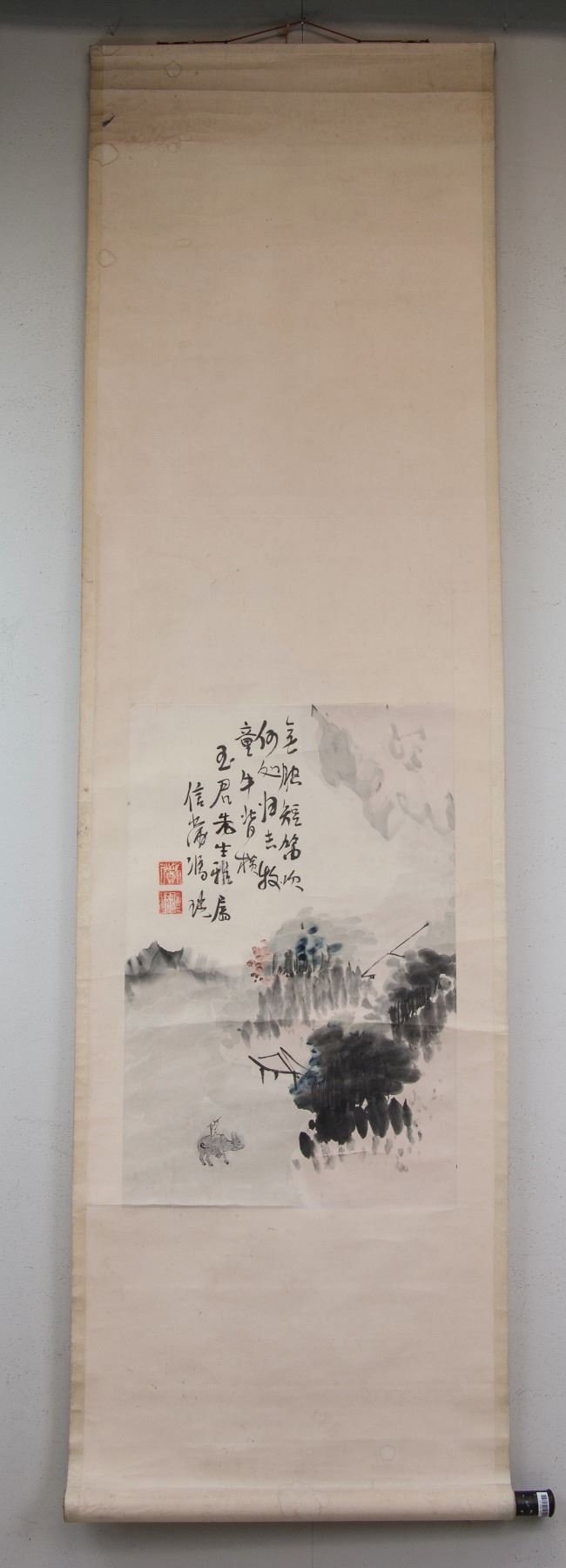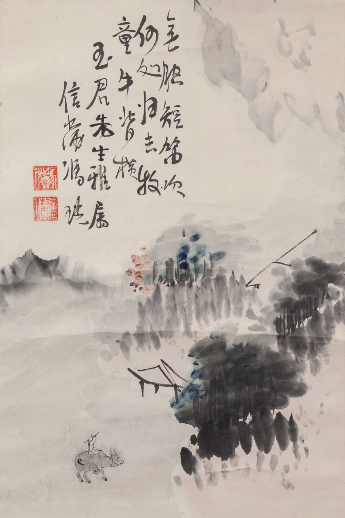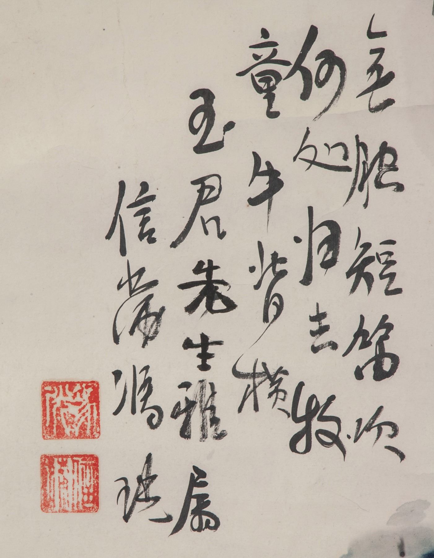 Mountainous landscape and cowboy; Chinese ink and watercolour on paper; hanging scroll; signed by artist; inscribed with 2 artist seals; 16th-18th century; 63 cm x 42 cm