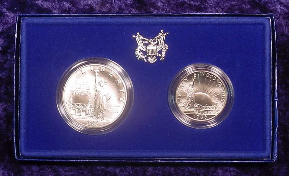 16. 1986 Statue of Liberty BU Two-Piece Set. Silver.
