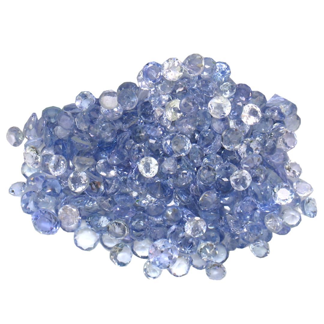 Fifty round mixed cut natural tanzanites, measuring 2.00 - 2.00 x 1.30 mm, exact total weight 16.23ct., clarity is slightly included, type I, medium, very slightly grayish, violetish blue color, (GIA vB 5/3), cut is good. Measurements & the color grad Westfield Appraised at $1,560.00.