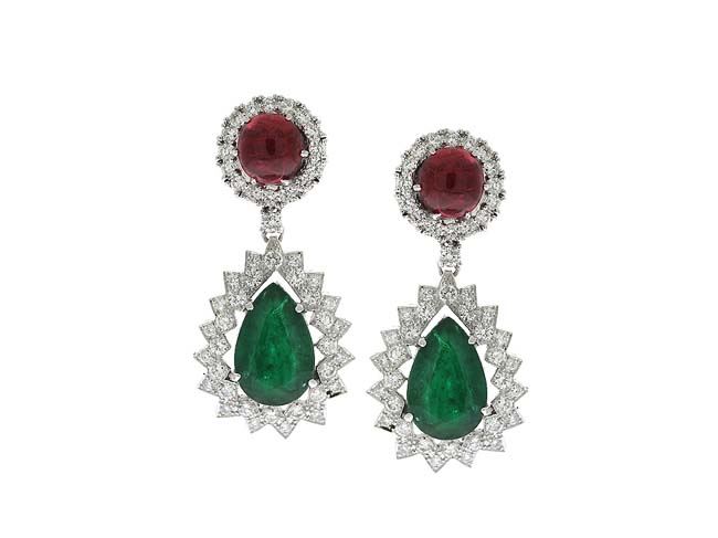 18k Gold Emerald, AND DIAMOND EARRING/Diamond Count 1:96/Diamond 1 TCW:3.14/Diamond Color & Clarity:G-H/SI1-SI3/Diamond Count 2:/Diamond 2 TCW:/Diamond Count 3:/Diamond 3 TCW:/Diamond Color & Clarity:/Gemstone Count 1: 2/Gemstone 1 TCW:13.12/Gemstone Type:Emerald/Gemstone Count 2: 2/Gemstone 2 TCW:/Gemstone Type:/Gemstone Count 3: /Gemstone 3 TCW:/Gemstone Type:/Metal 1:18k GoldWhite Gold/Gram Weight:14.59/Weight/gram:/Gross Weight:16.84/Item-Size (HxW mm):42xW