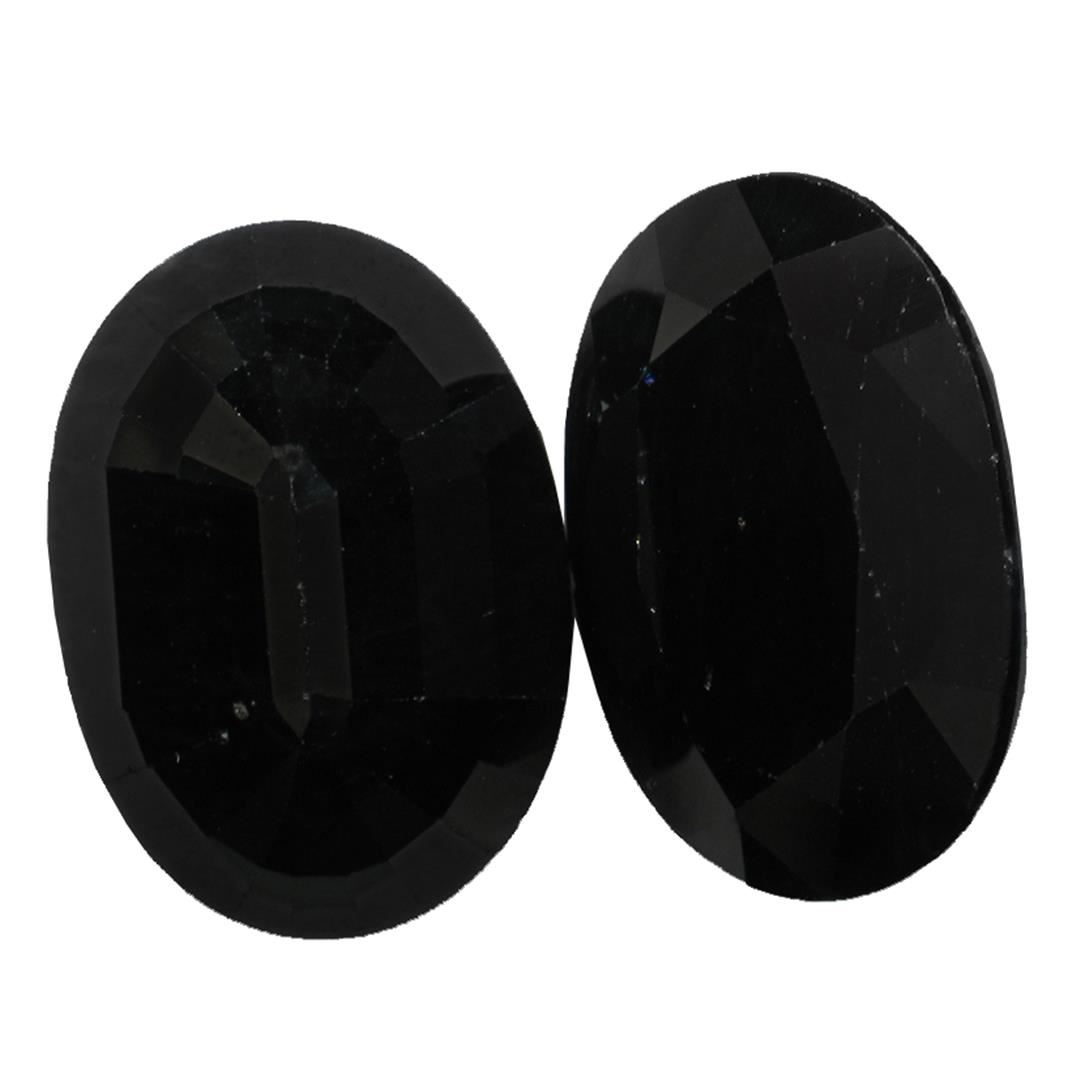 Two oval mixed cut natural blue sapphires, measuring 14.00 x 10.00 x 6.50mm, exact total weight 16.29ct., clarity is heavily included, type II, very dark, very slightly grayish, blue color, (GIA B 8/3), cut is good. Measurements are an average for the group. Transmitting light very diffusely, opaque, Naturally occurring internal & external characteristics are present, Indications of multiple laboratory enhancements, including high temperature heat treatment. Westfield Appraised at $1,500.00.
