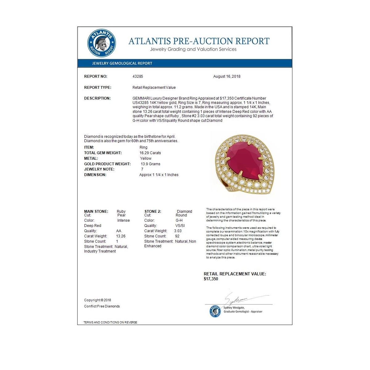 16.29 ctw Ruby & Diamond Ring 14K Yellow Gold