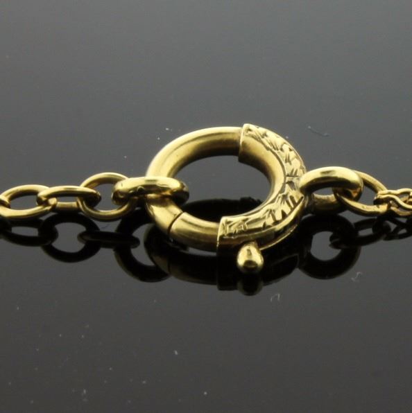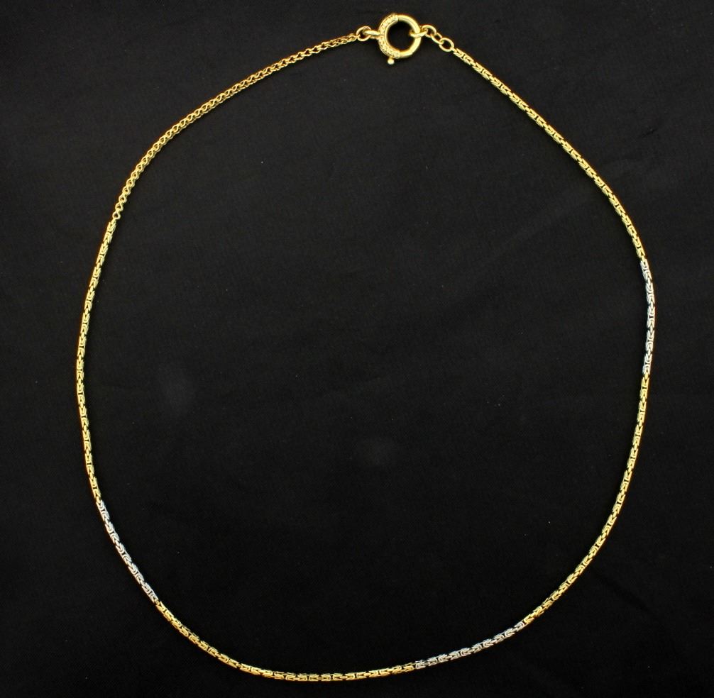 In 18K yellow & white gold, it is 1.35mm thick and has a large clasp. 7.2g