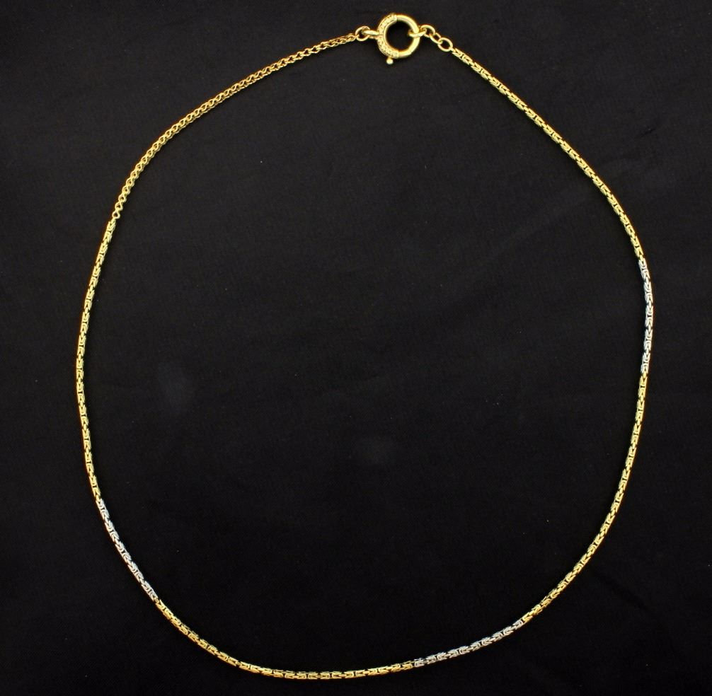 In 18K yellow & white gold, it is 1.35mm thick and has a large clasp. 7.2g