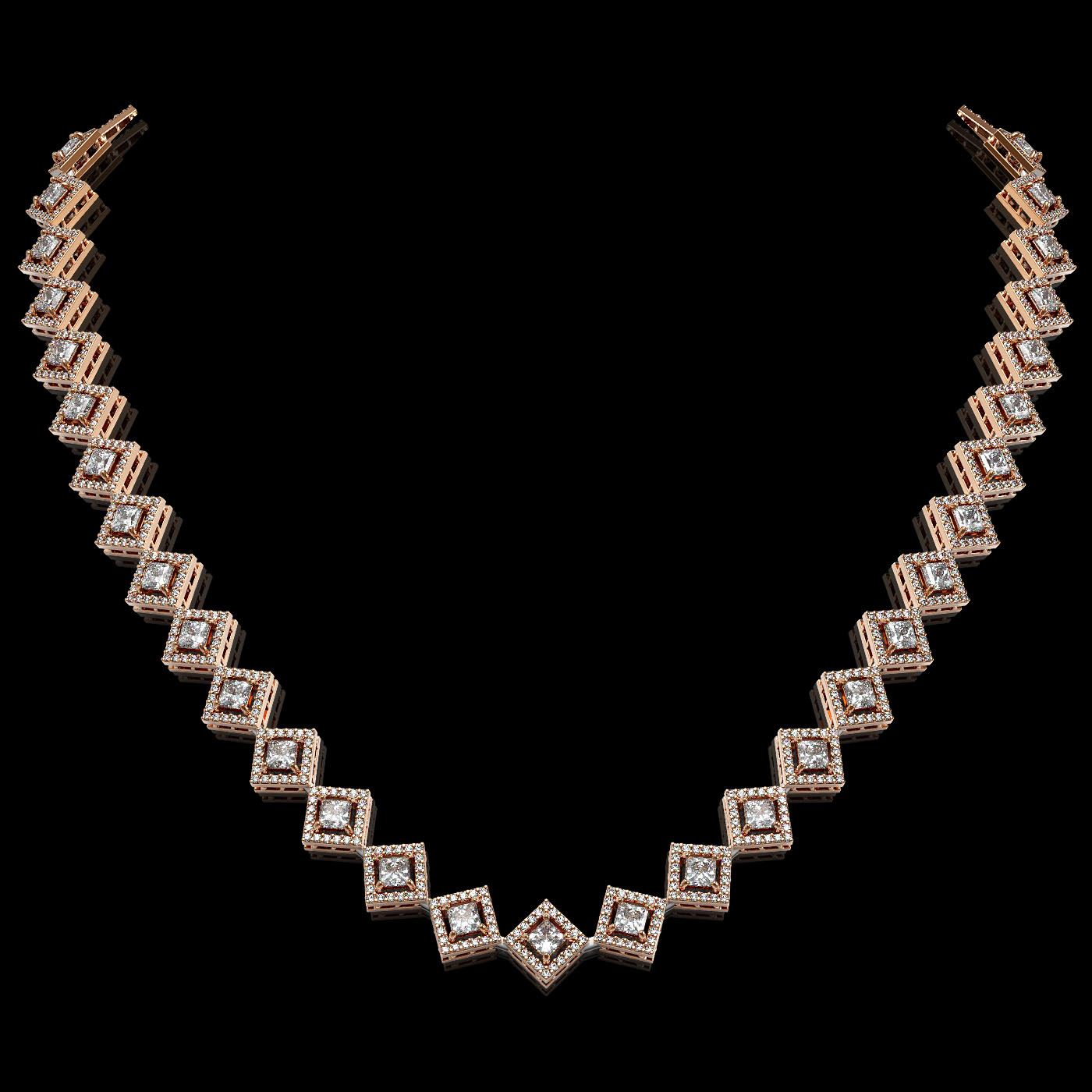 REF-1402G6W - SKU: 42966 ---- 16.4 ctw Princess Cut Diamond Micro Pave Necklace 18K Rose Gold