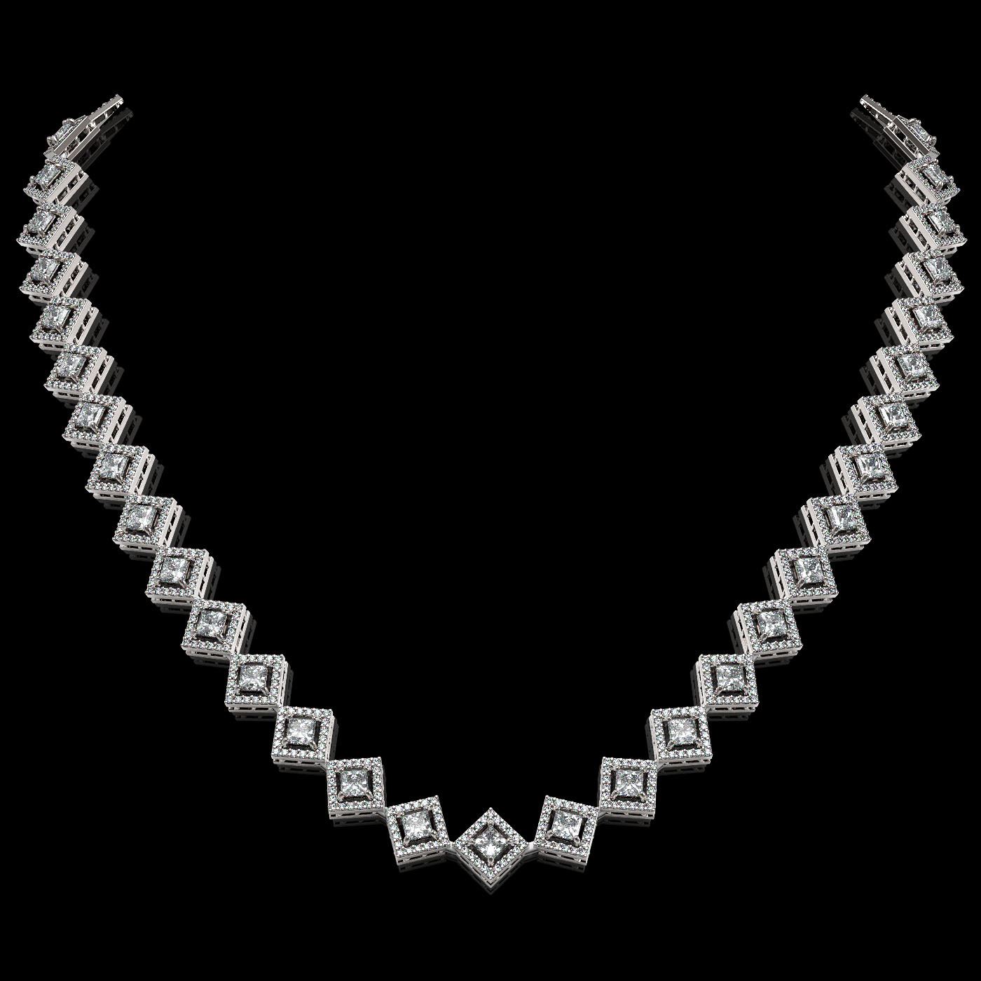 REF-1402F6M - SKU: 42965 ---- 16.4 ctw Princess Cut Diamond Micro Pave Necklace 18K White Gold