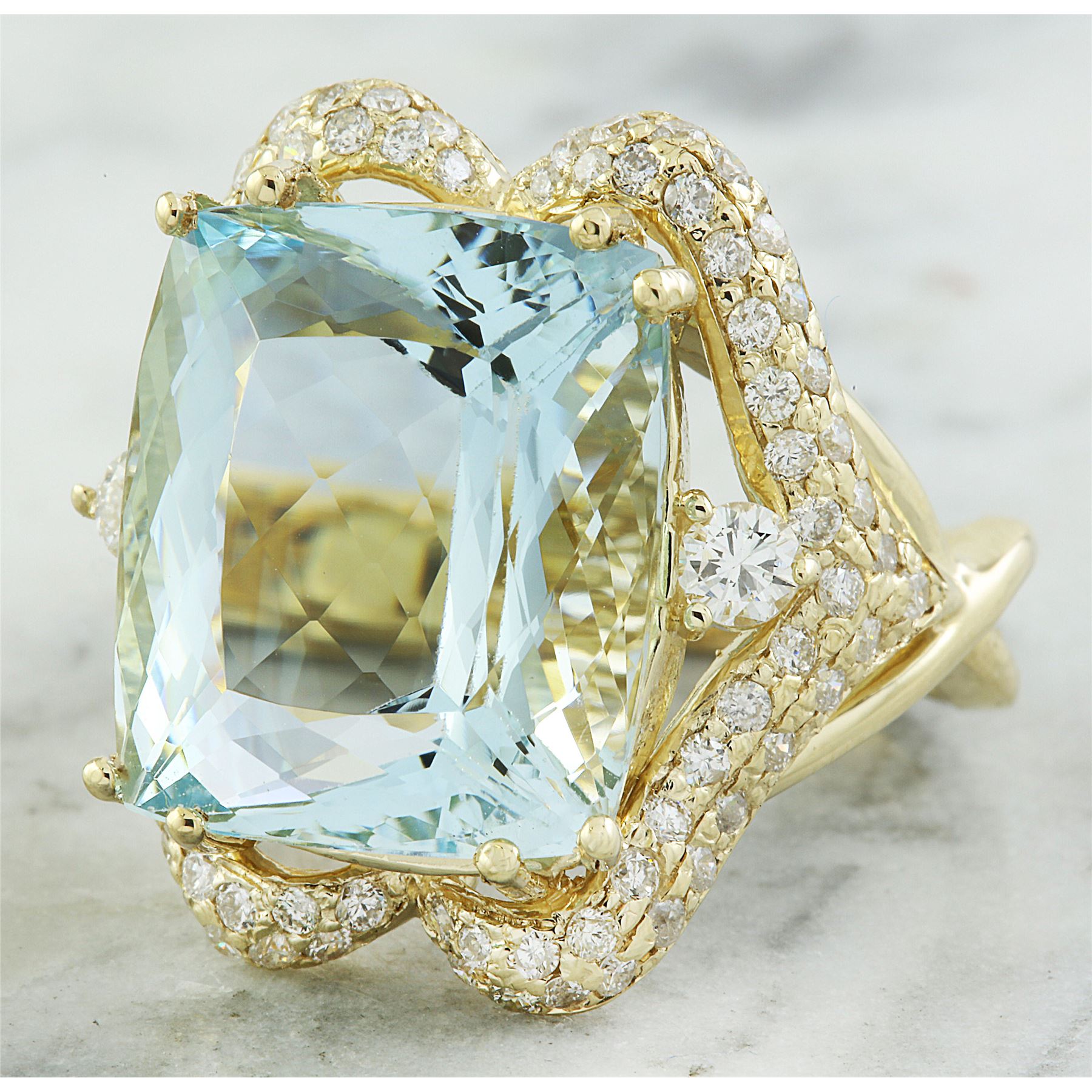 16.40 CTW Aquamarine 18K Yellow Gold Diamond Ring