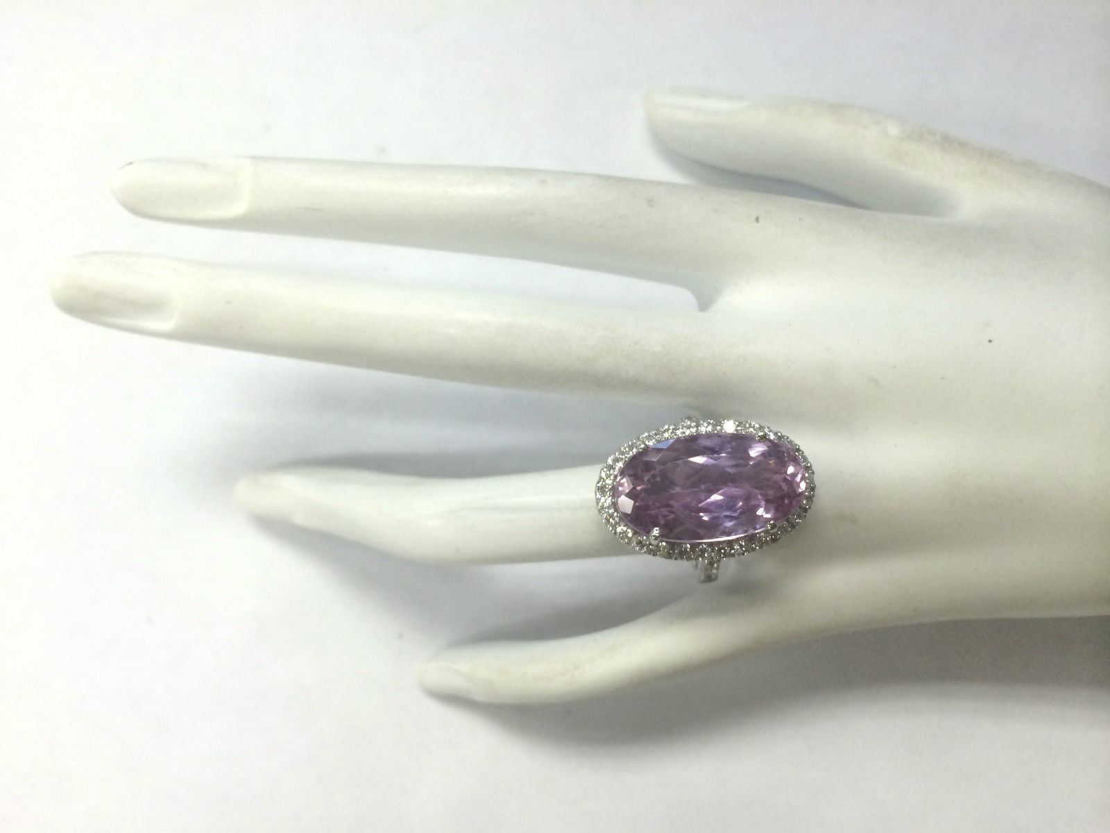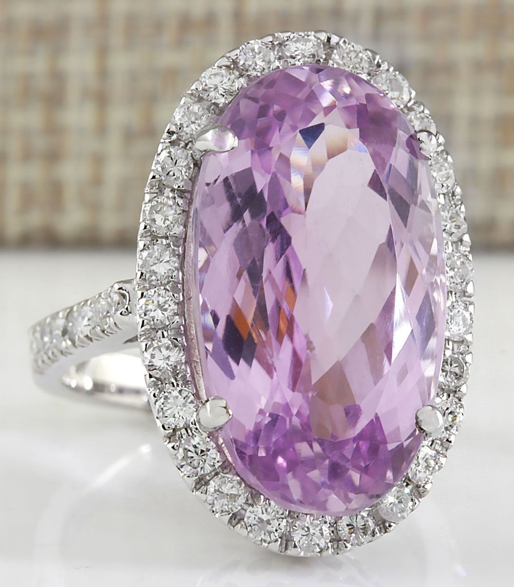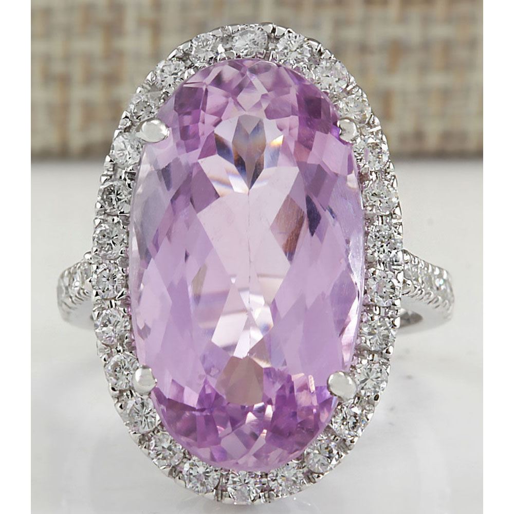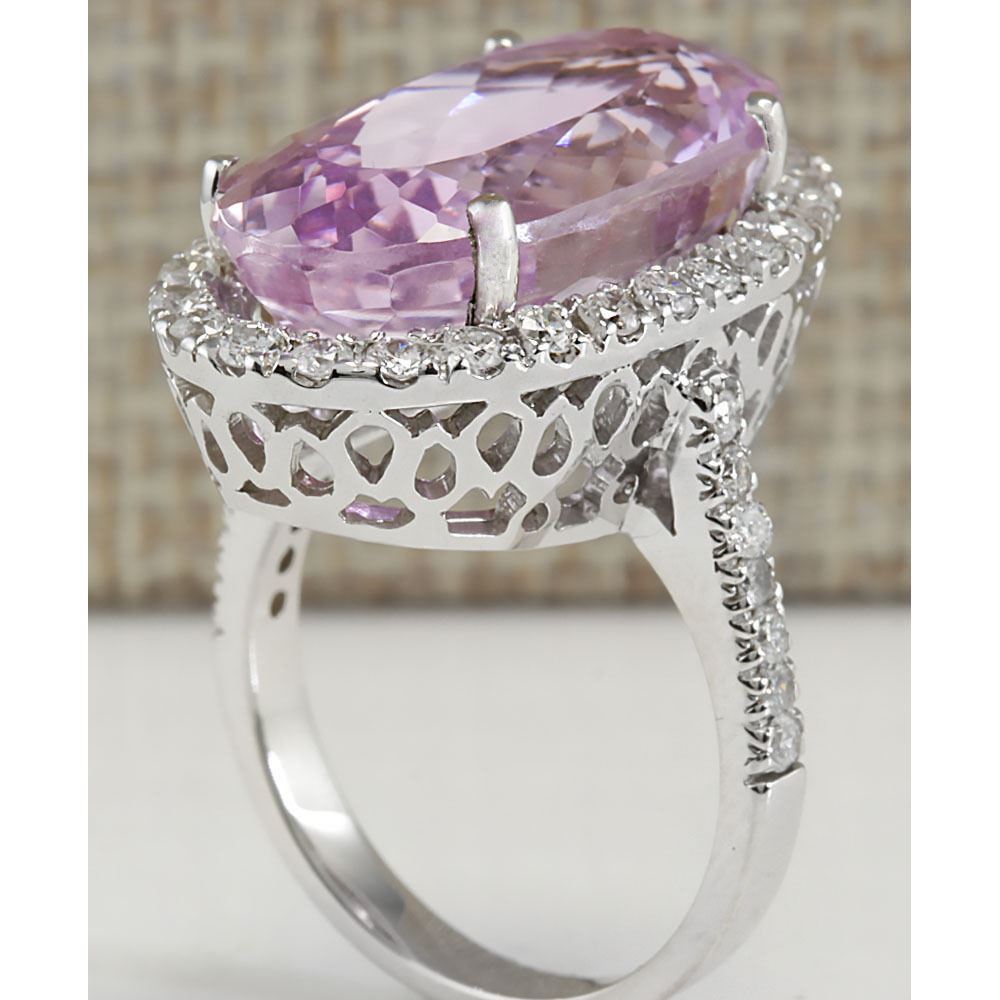 16.40 CTW Natural Kunzite And Diamond Ring 18K Solid White Gold