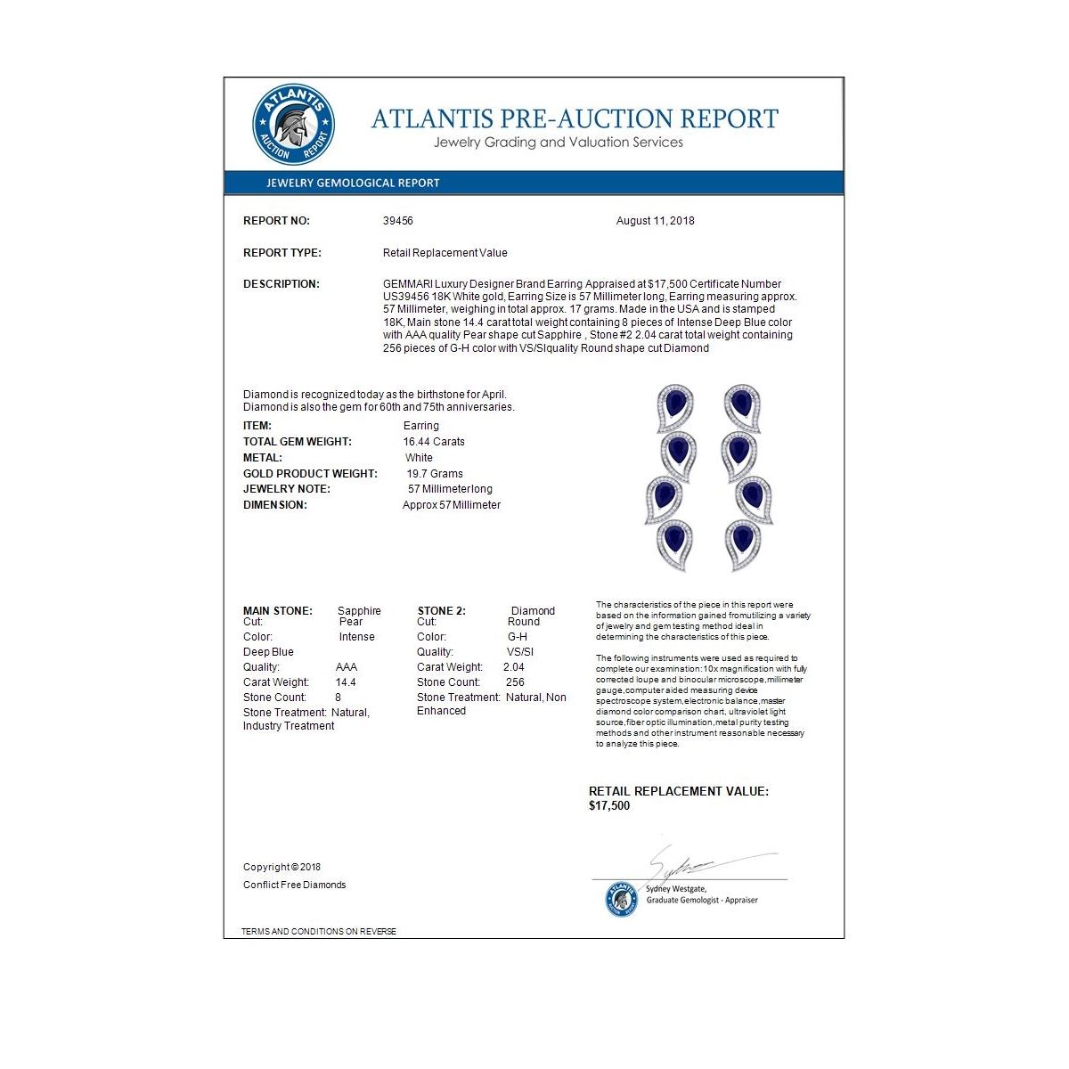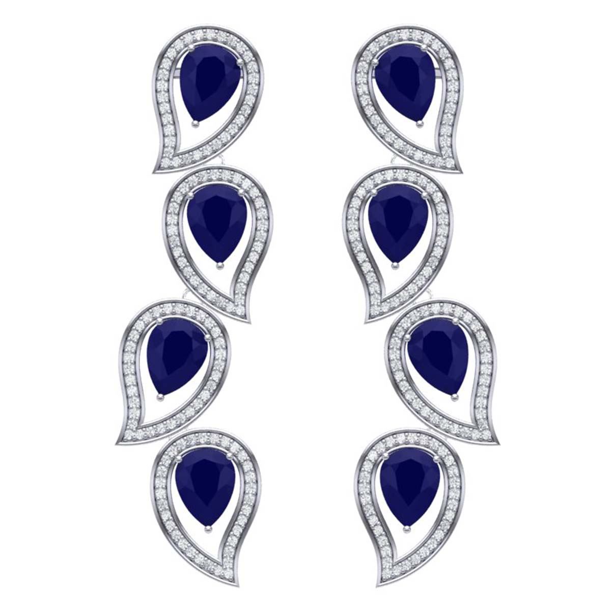 16.44 ctw Sapphire & VS Diamond Earrings 18K White Gold