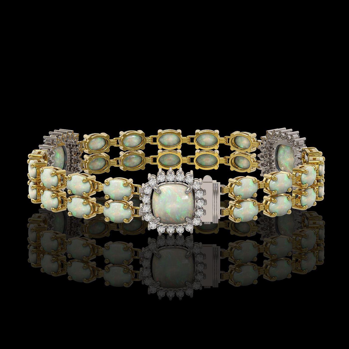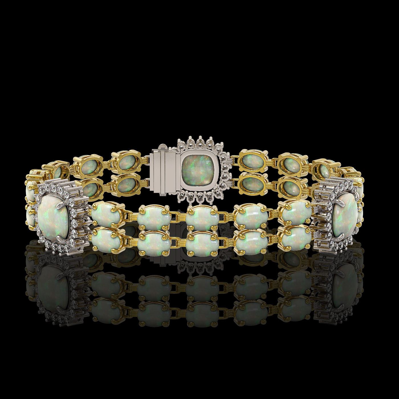 REF-286N2F - SKU: 44755 ---- 16.55 ctw Opal & Diamond Bracelet 14K Yellow Gold