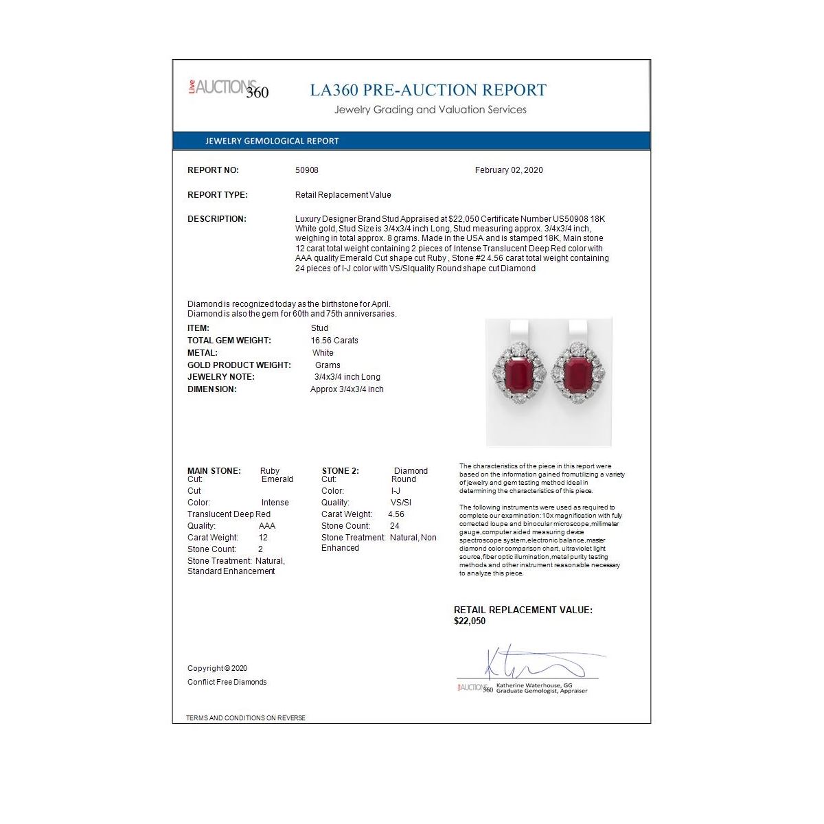REF-527X3A - SKU: 50908 ---- 16.56 ctw Ruby & Diamond Earrings 18K White Gold