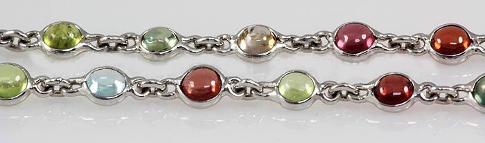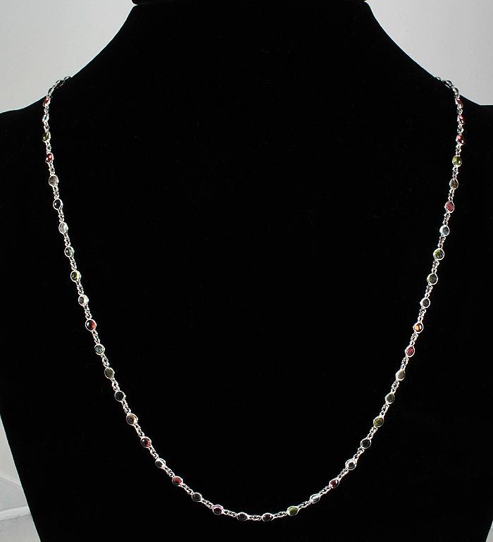 16.56CT Multi-color Sapphire Silver Bezel Necklace 7.47 **|**|** 22in. Long Multi-color Sapphire Gemstone in Bezel Design Silver Necklace; 69pcs 4mm ; MSRP: $1300