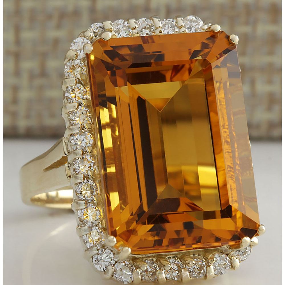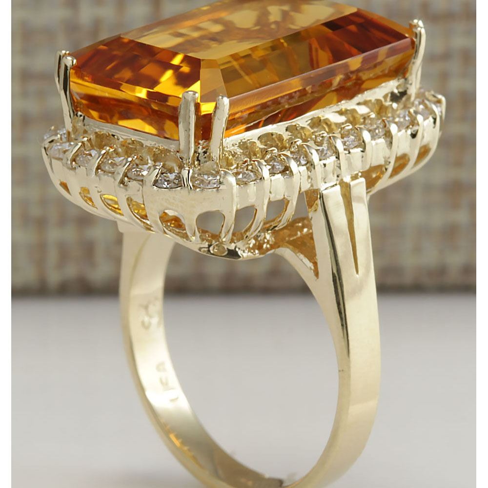 16.61 CTW Natural Citrine And Diamond Ring 18K Solid Yellow Gold