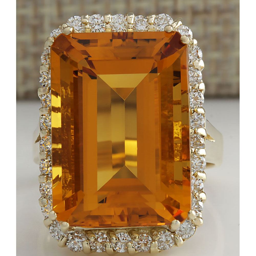 16.61 CTW Natural Citrine And Diamond Ring 18K Solid Yellow Gold