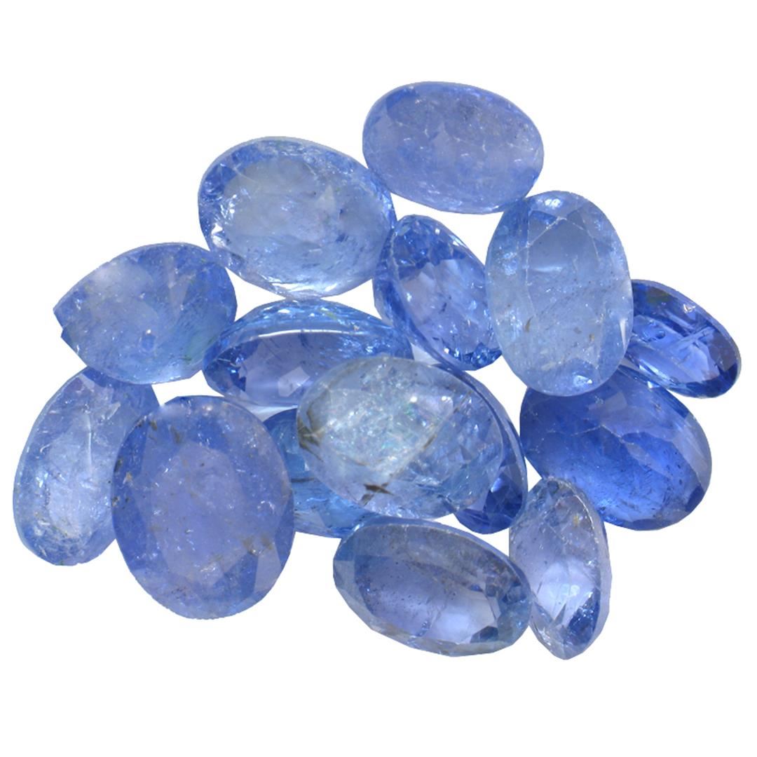 Fifteen oval mixed cut natural tanzanites exact total weight 16.63ct., clarity is moderately included, type I, medium dark, very slightly grayish, bluish violet color, (GIA bV 6/3), cut is good. Transmitting light with a minimum of distortion, transparent. Naturally occurring internal & external characteristics are present. Color grade is an average for the group. Tanzanite is a very rare gemstone that is only found in the country of Tanzania. Originally discovered in 1967. Tiffany & Company, named the stone Tanzanite. It is found in the Usumburu Mountains that border the Umba Valley of northern Tanzania. Tanzanite occurs in gray, brown, violet, blue, reddish-purple, & green. The gem is interesting because of its exceptional pleochroism. Rotated in different directions a tanzanite will exhibit multiple changes of color. Tanzanite has a low tolerance to ultrasonic cleaning, and should not be cleaned using this method. Westfield Appraised at $1,600.00.
