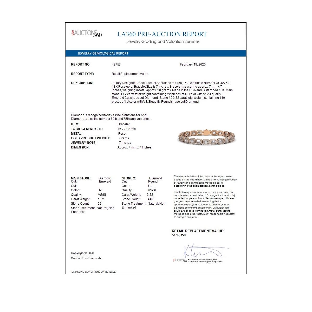 REF-2665F4M - SKU: 42753 ---- 16.72 ctw Emerald Cut Diamond Micro Pave Bracelet 18K Rose Gold