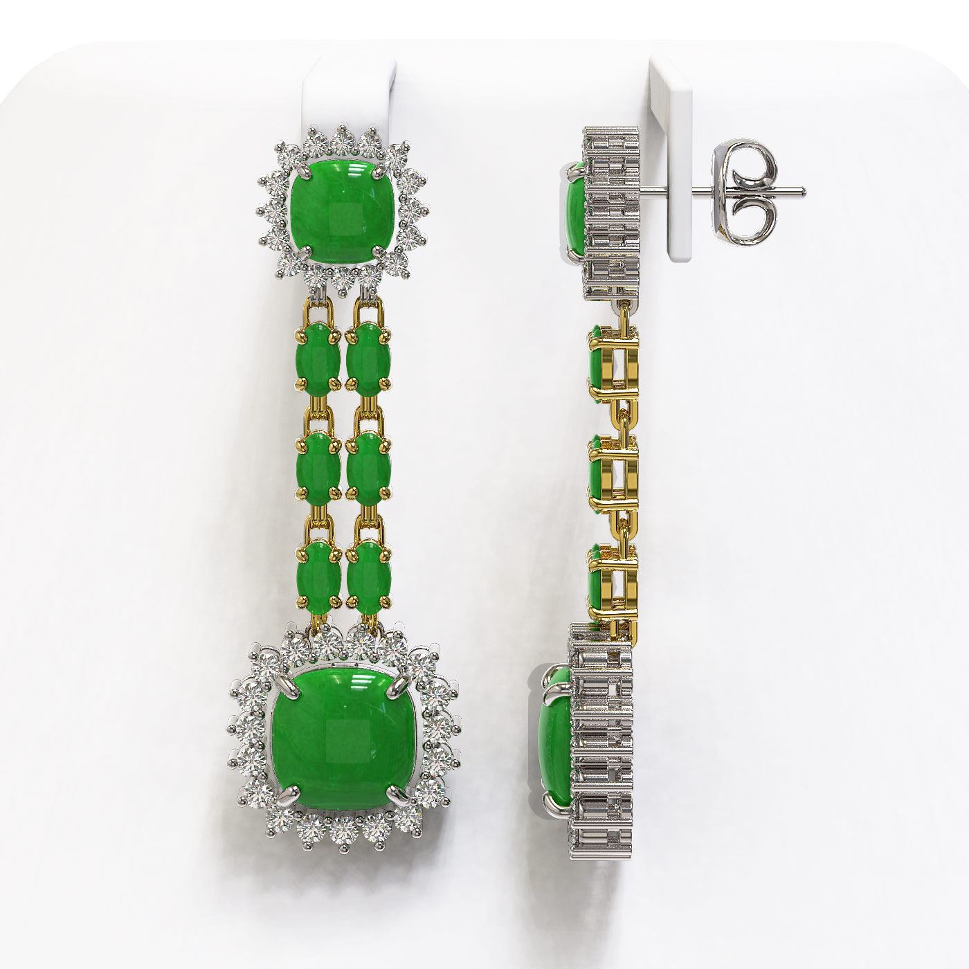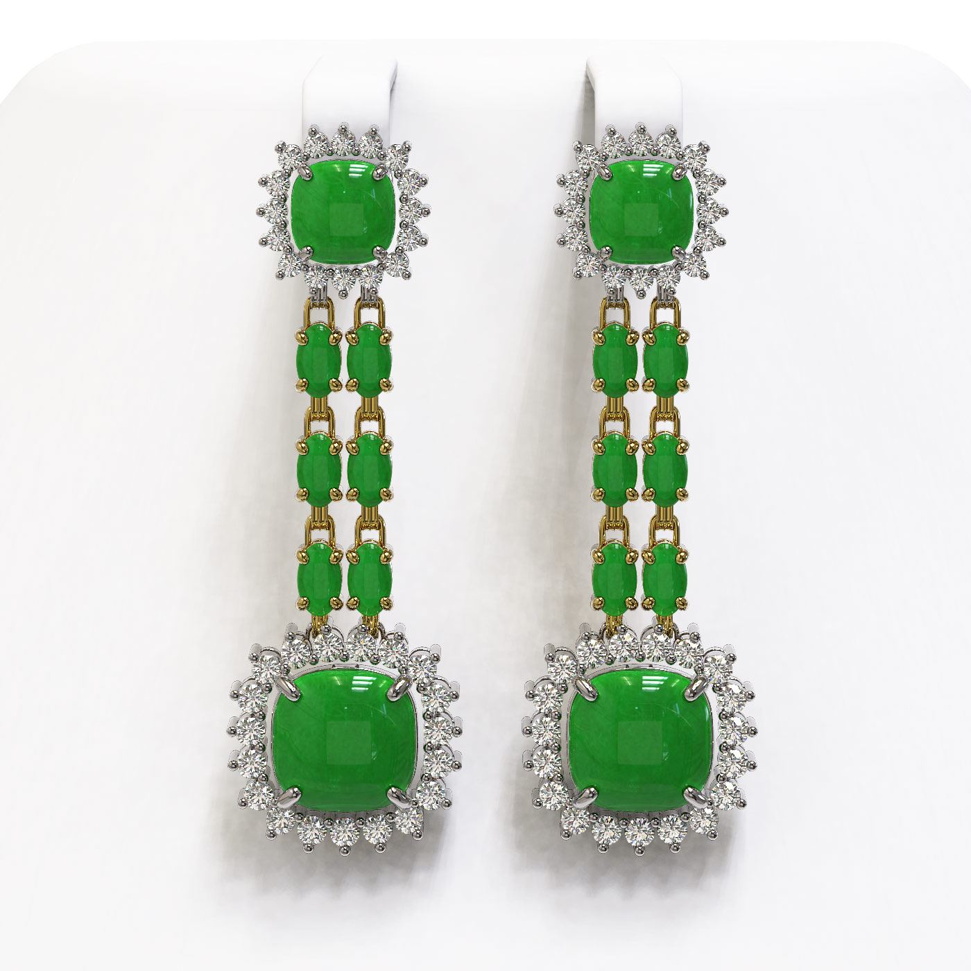 SKU: 44965 ---- 16.72 ctw Jade & Diamond Earrings 14K Yellow Gold