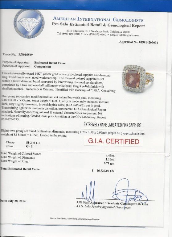 Appraisals should be used for verification of gemstone and/or metal weight, size, and grade only.