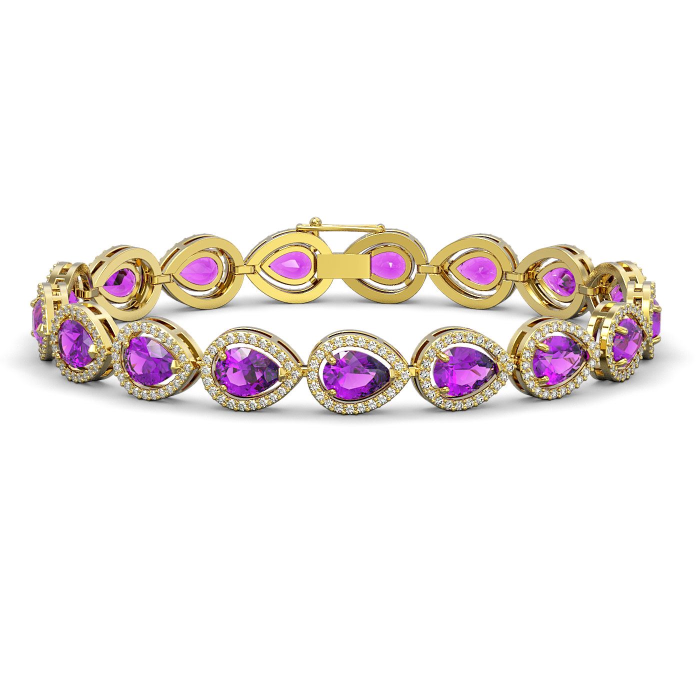 REF-318A2N - SKU: 41131 ---- 16.76 ctw Amethyst & Diamond Micro Pave Halo Bracelet 10k Yellow Gold