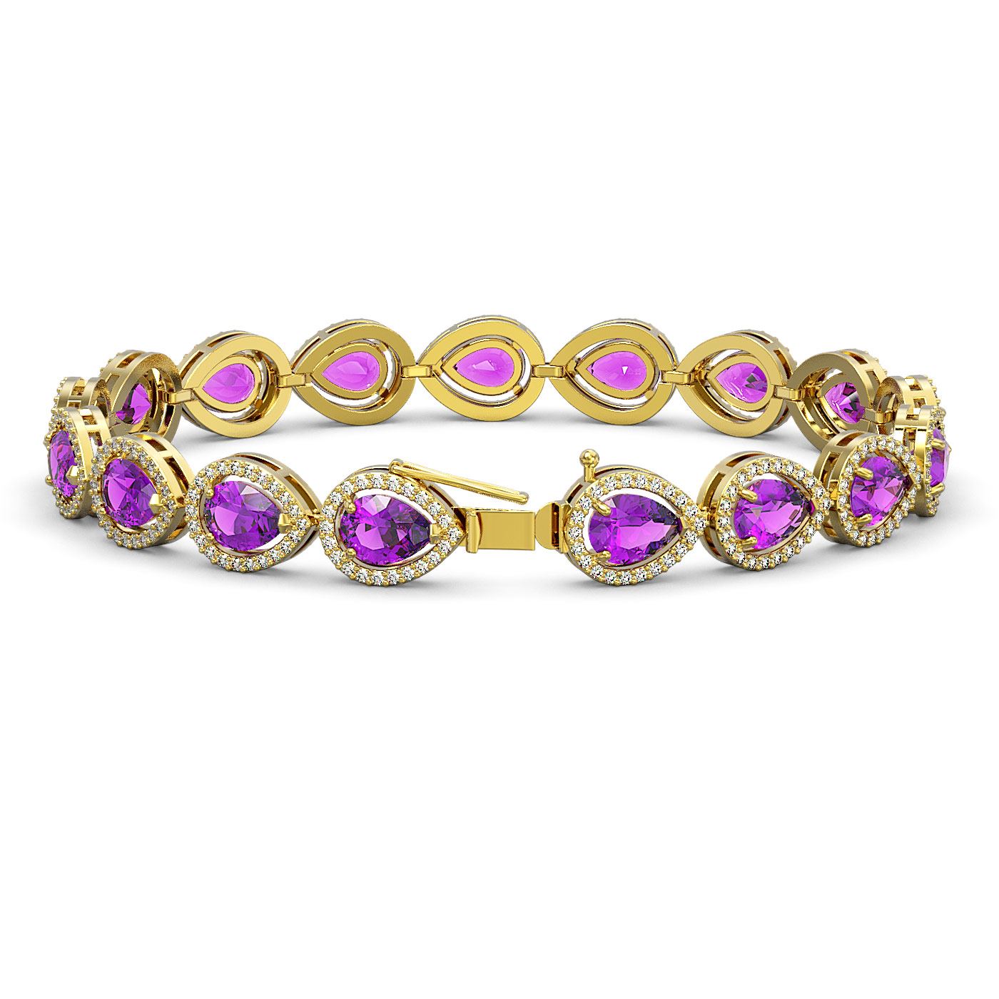 REF-318A2N - SKU: 41131 ---- 16.76 ctw Amethyst & Diamond Micro Pave Halo Bracelet 10k Yellow Gold