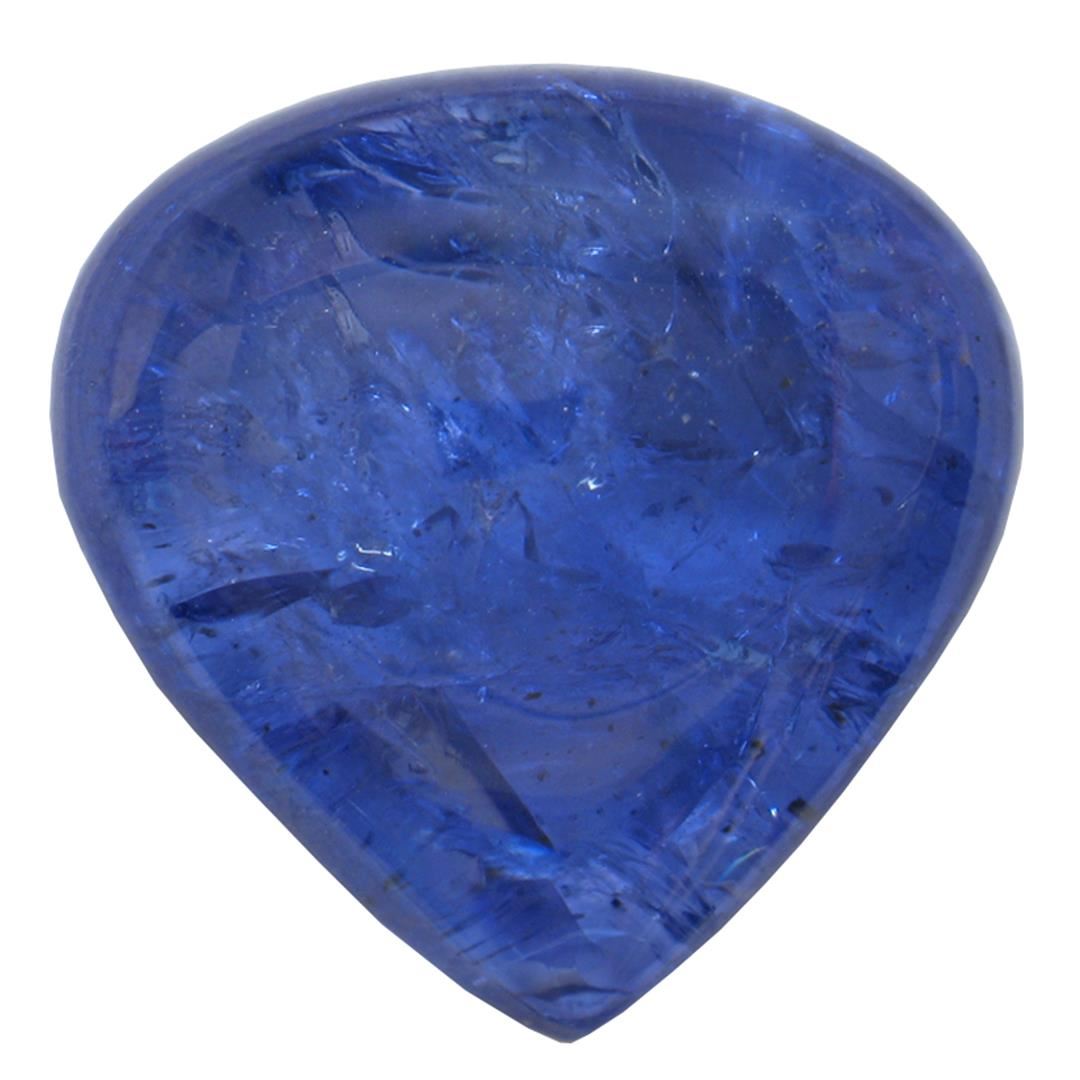 One pear cabochon cut natural tanzanite, measuring 16.50 x 16.50 x 6.50mm, exact weight 16.77ct., clarity is heavily included, type I, dark, moderately strong, violetish blue color, (GIA vB 7/4), cut is good. Transmitting light somewhat diffusely, transparent to translucent. Naturally occurring internal & external characteristics are present. Tanzanite is a very rare gemstone that is only found in the country of Tanzania. Originally discovered in 1967. Tiffany & Company, named the stone Tanzanite. It is found in the Usumburu Mountains that border the Umba Valley of northern Tanzania. Tanzanite occurs in gray, brown, violet, blue, reddish-purple, & green. The gem is interesting because of its exceptional pleochroism. Rotated in different directions a tanzanite will exhibit multiple changes of color. Tanzanite has a low tolerance to ultrasonic cleaning, and should not be cleaned using this method. Westfield Appraised at $1,615.00.