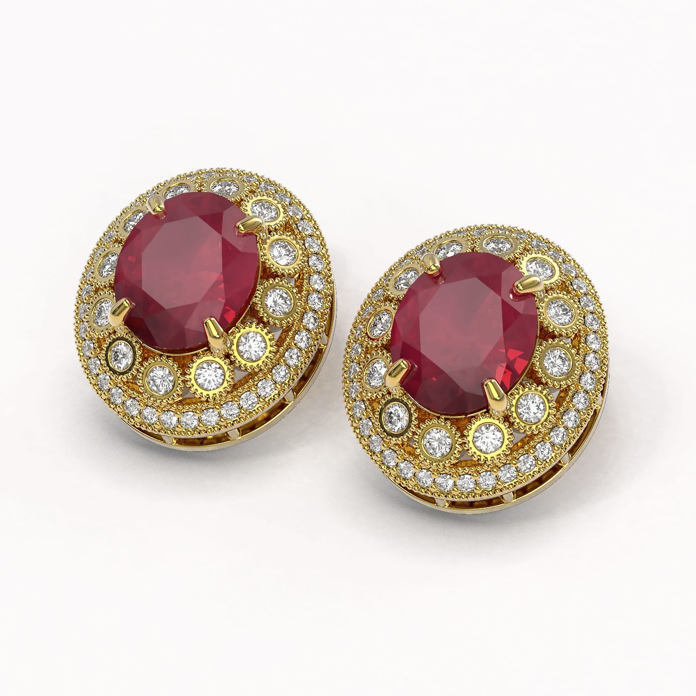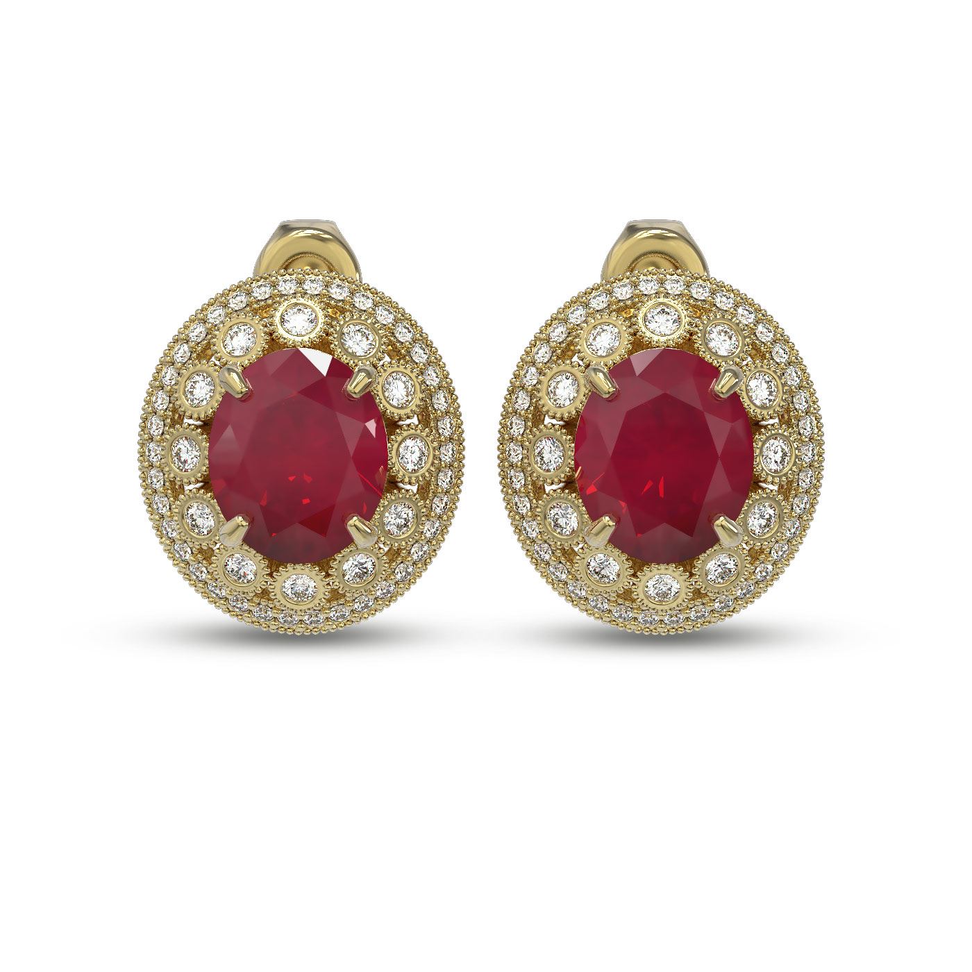SKU: 43795 ---- 16.81 ctw Certified Ruby & Diamond Victorian Earrings 14K Yellow Gold