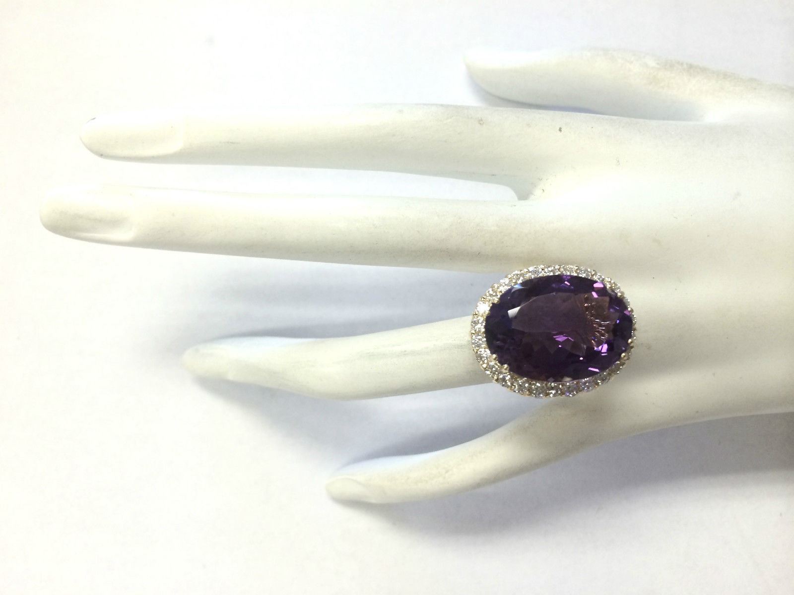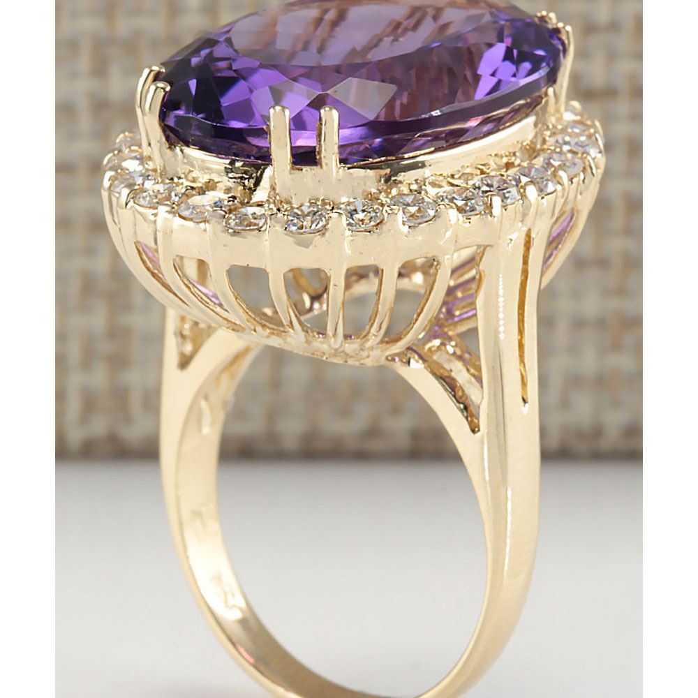 16.86 CTW Natural Amethyst And Diamond Ring In 14K Yellow Gold