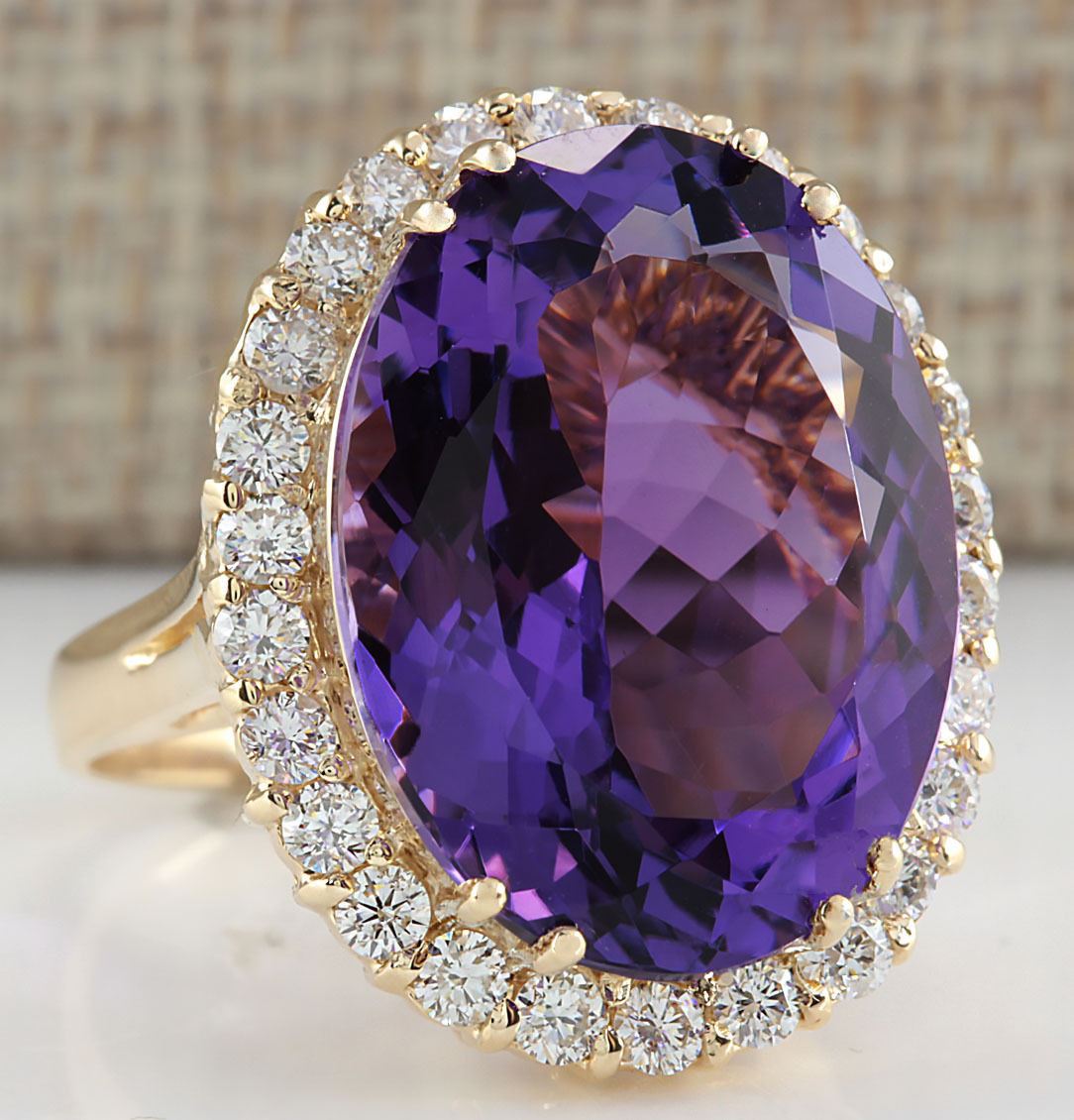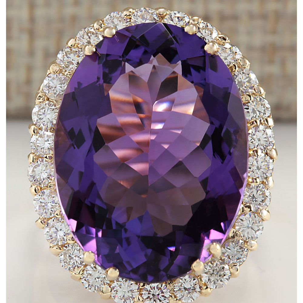 16.86 CTW Natural Amethyst And Diamond Ring In 14K Yellow Gold